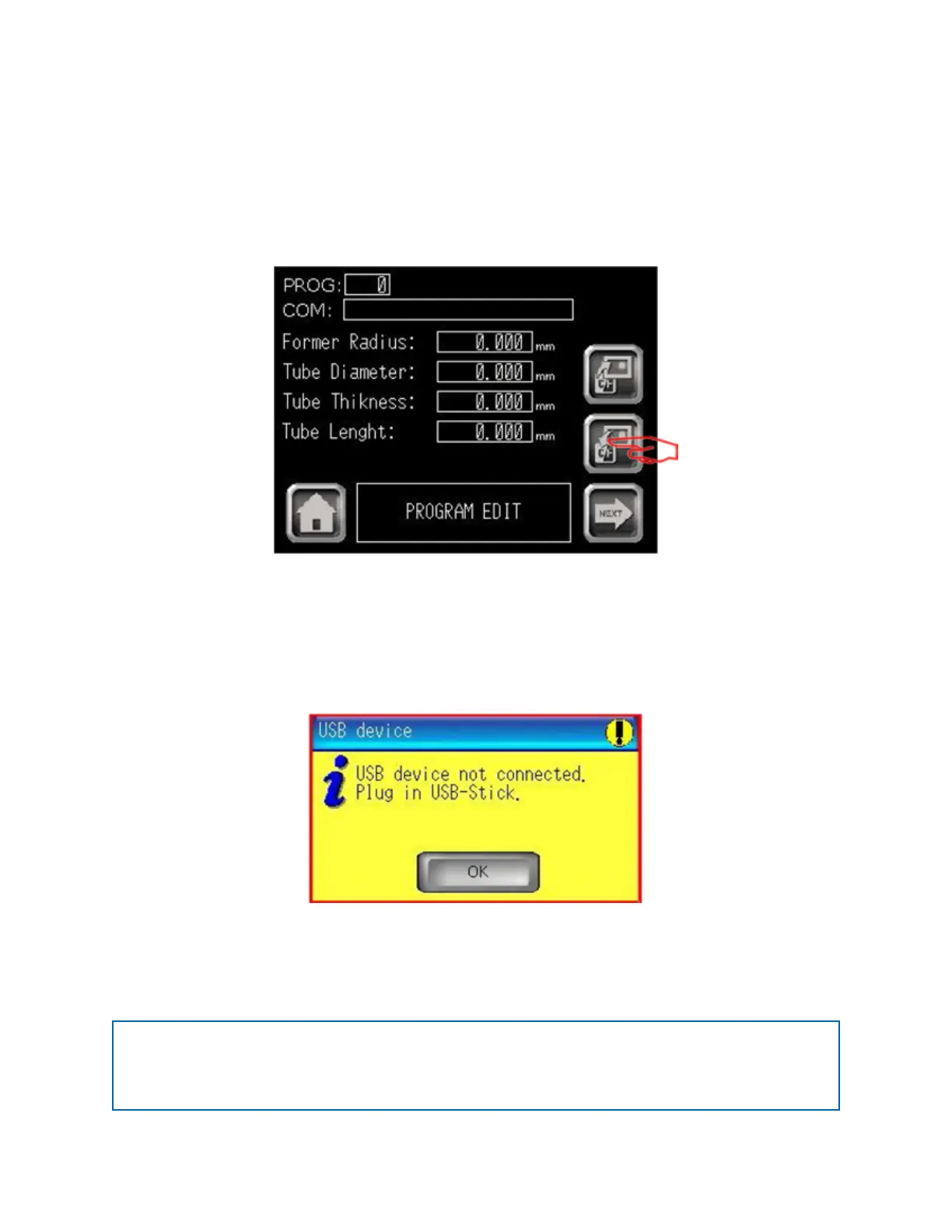 Functionality: This section describes how to store a program on USB key.