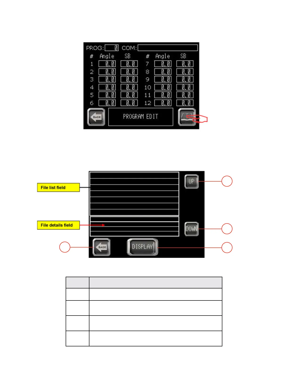 4 - Press “PROGRAM LIST” button. The following screen is displayed:
