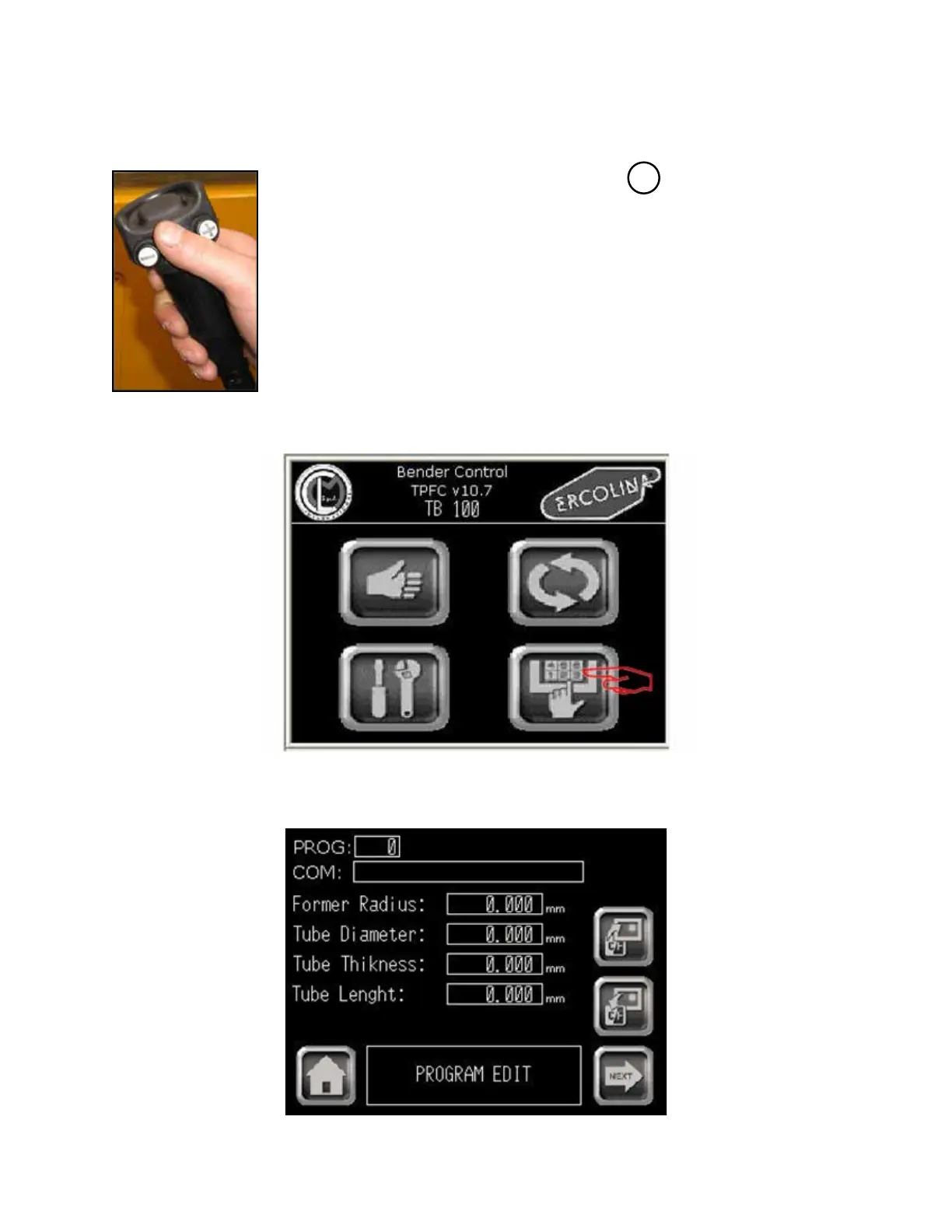 4 - Select “PROGRAM”. The Program main screen appears.