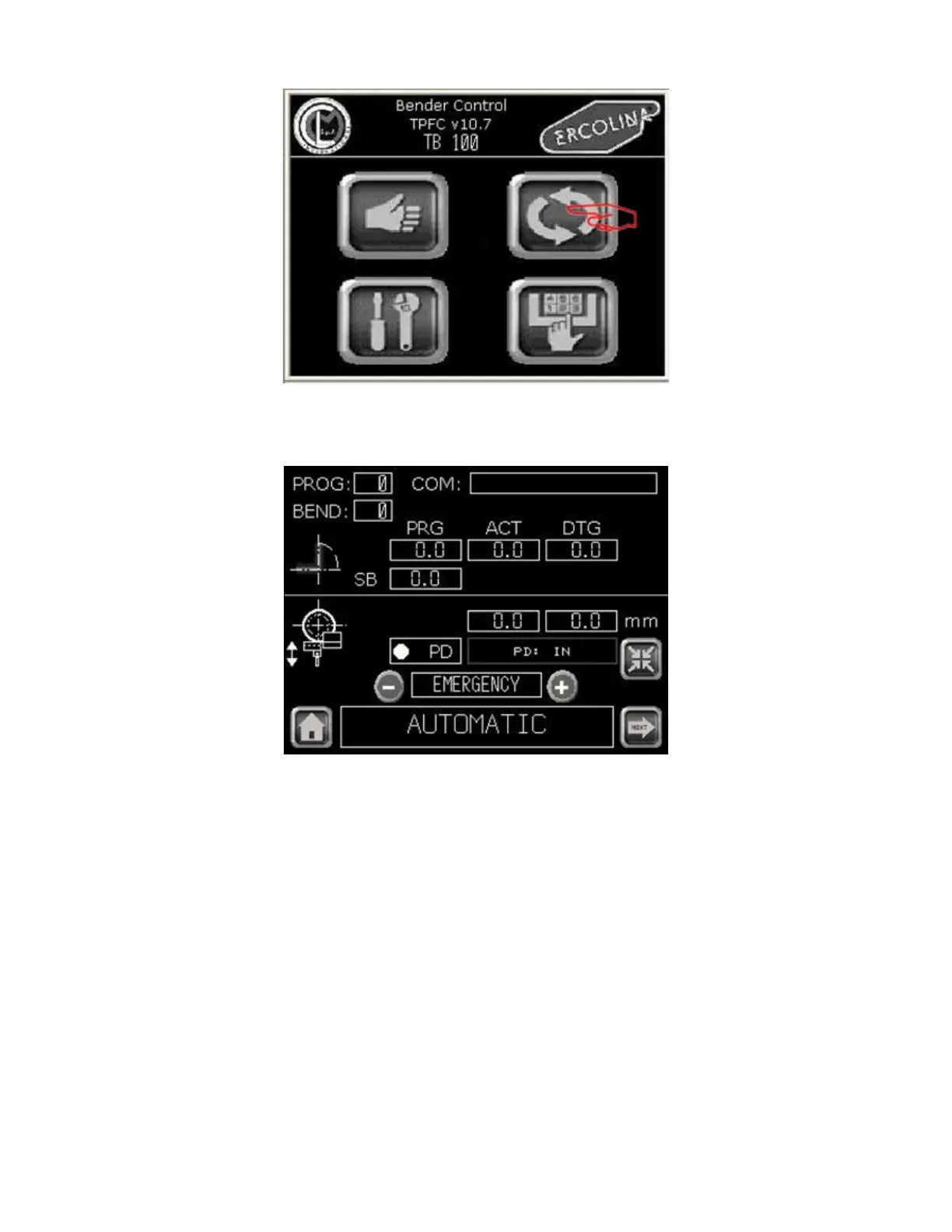5 - Select Automatic menu. The auto main screen appears.