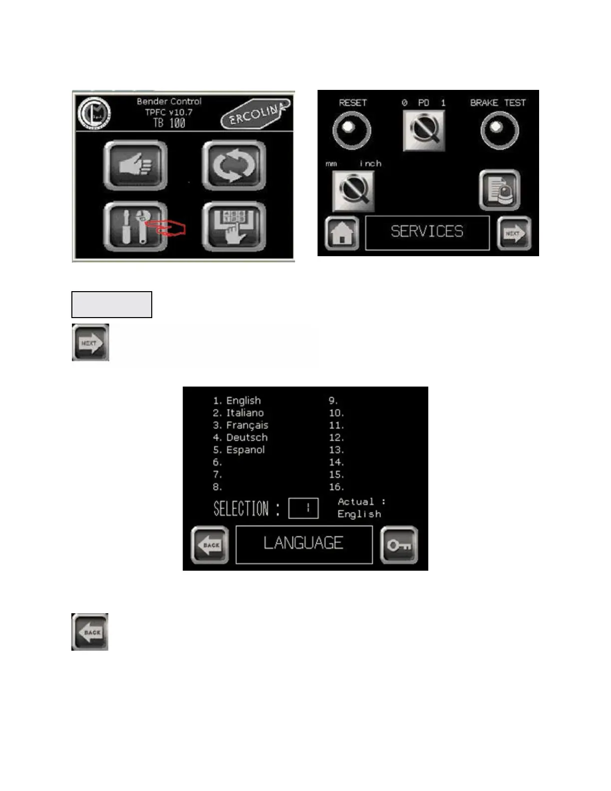 Ercolina TB100 - Changing Language; Language Selection