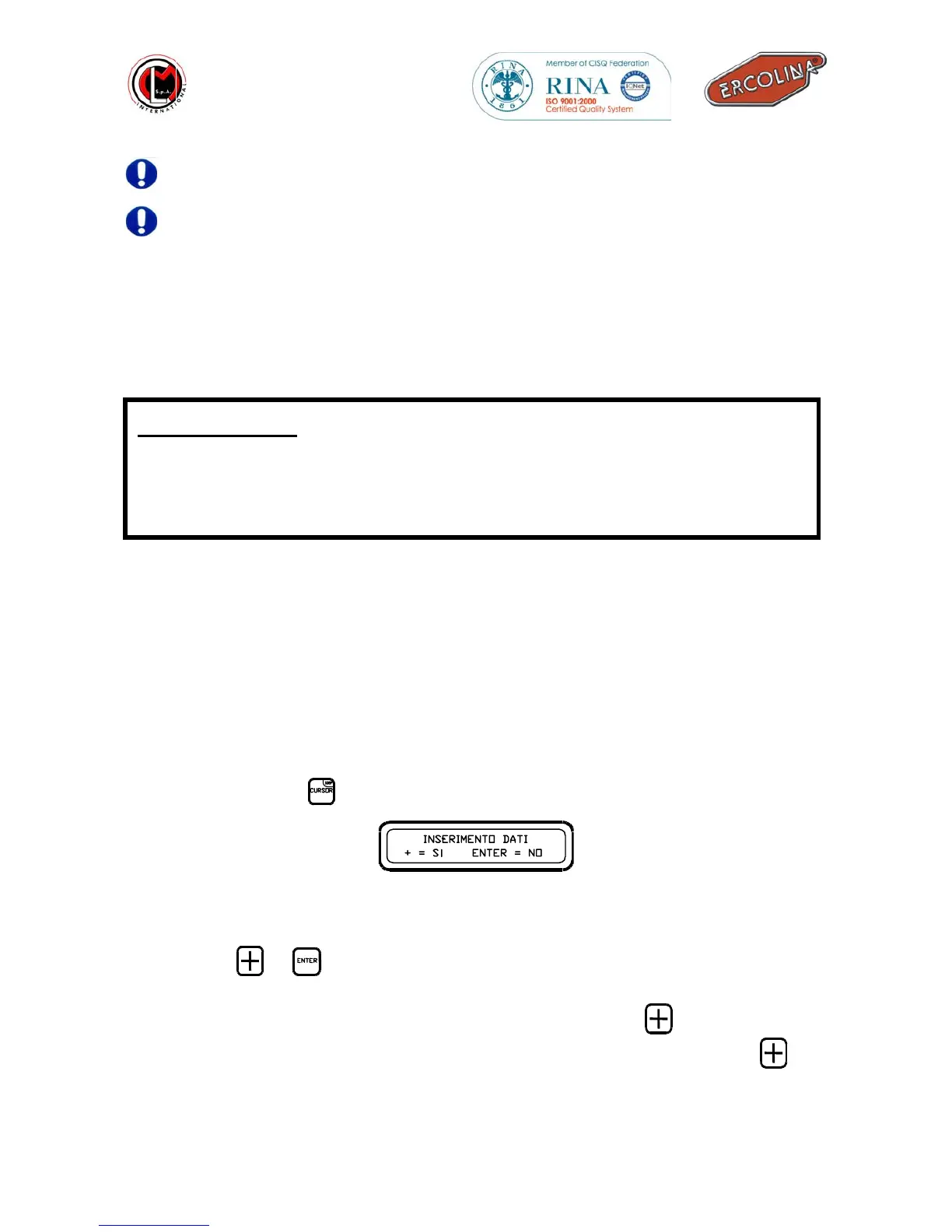 or keys to continue or not the data entry mode;