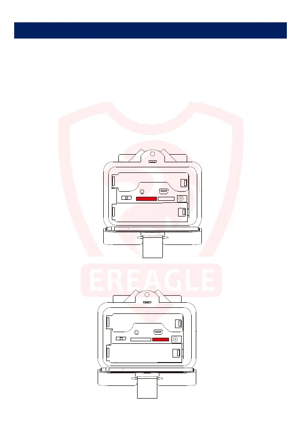 Open the camera bottom cover, unlock the battery cover plate, to put the alkaline batteries in the battery