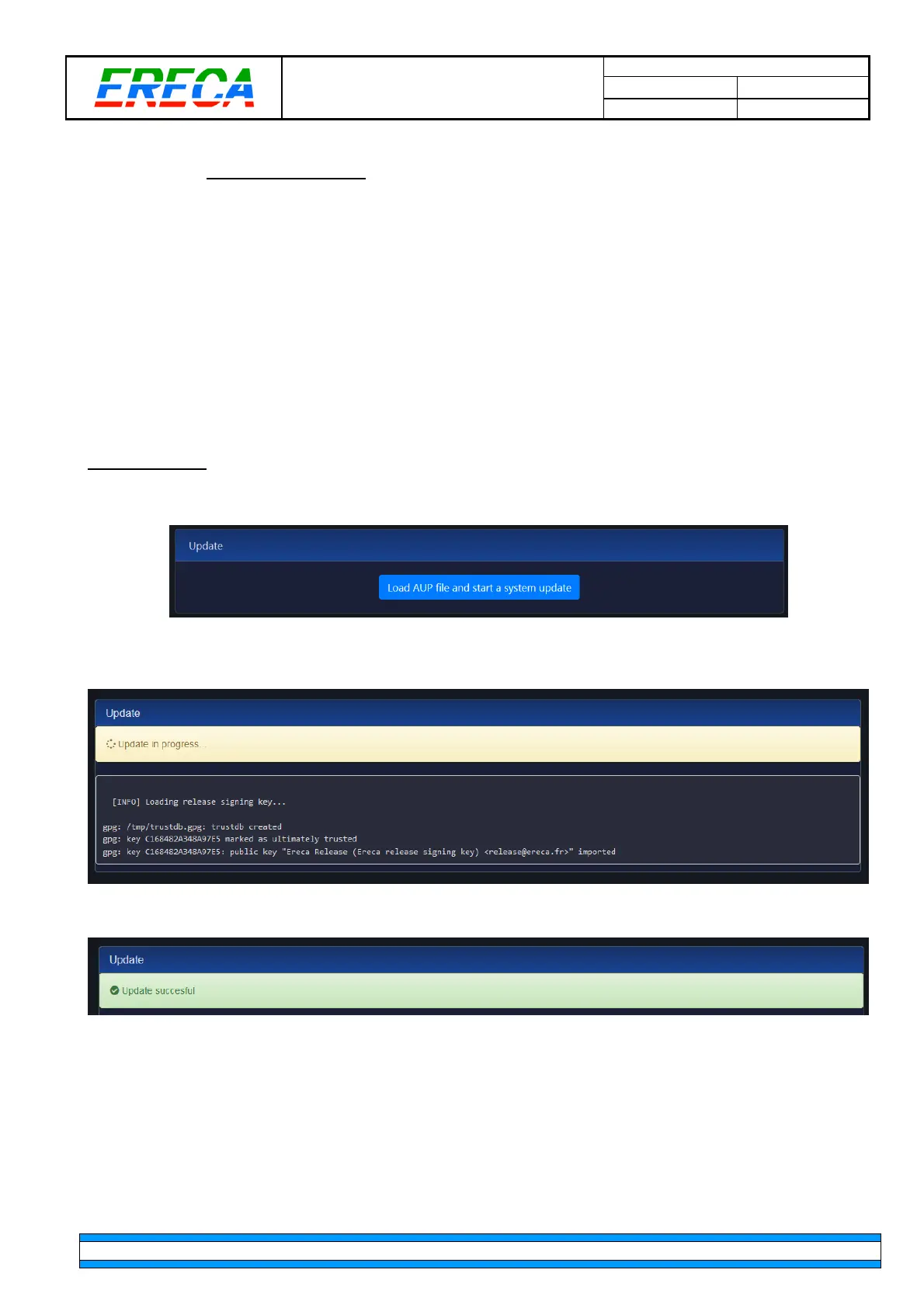 package containing every info for internal Processor and FPGA’s upgrade. The package will be self-