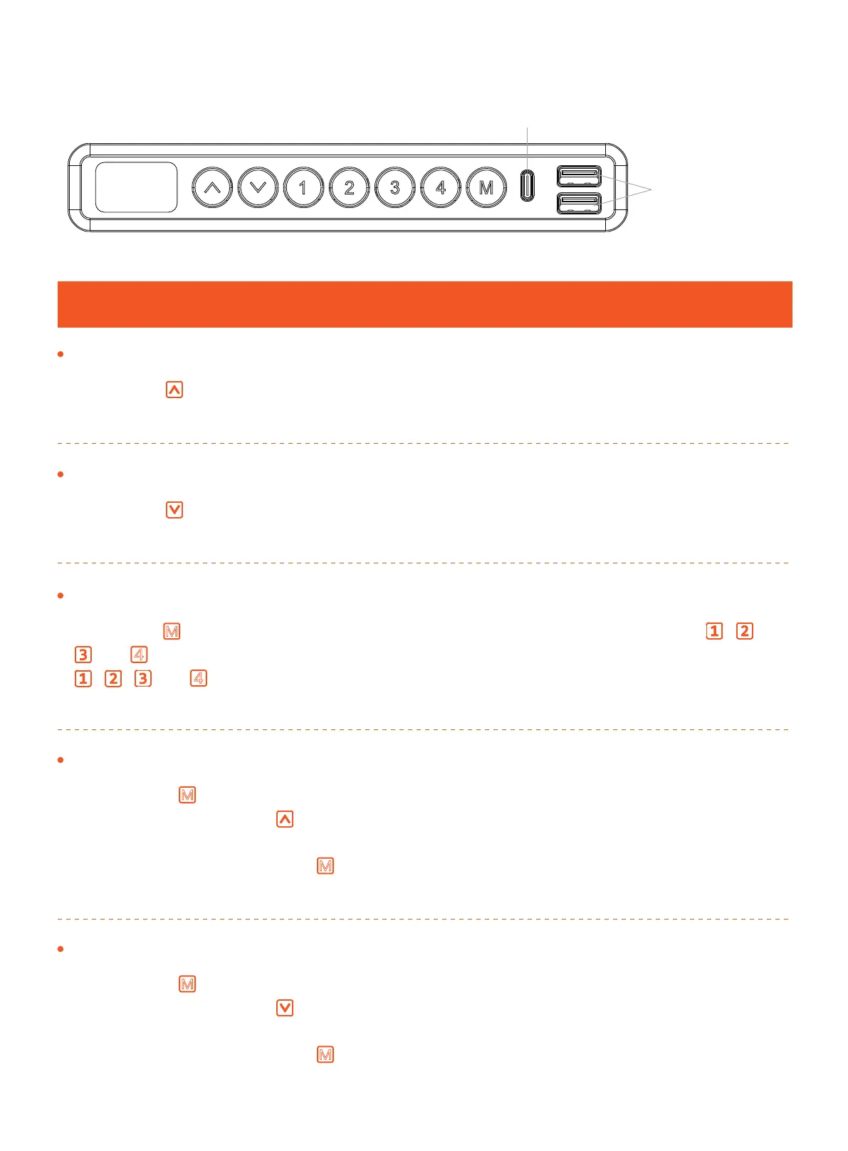 , , , or button, the desk will move to the height that was previously