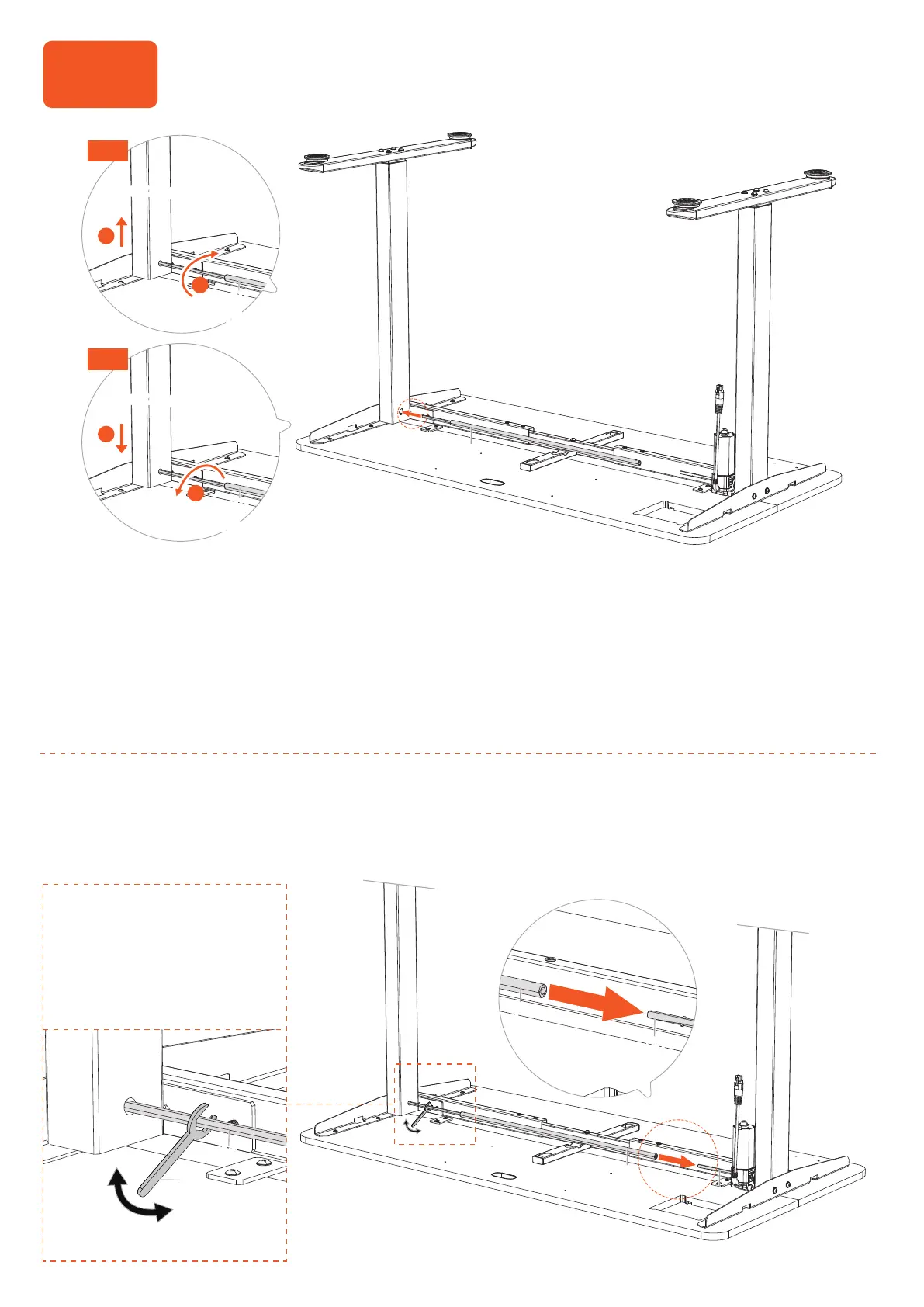 Before attaching the transmission rod, measure the heights of the two desk