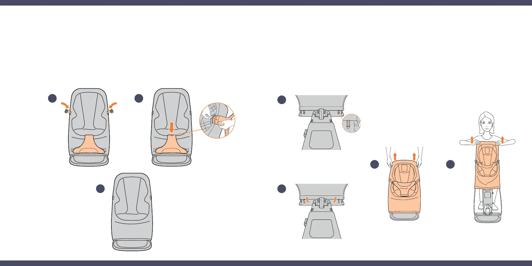 EN Convert Bouncer to Toddler Chair FR Passer du mode Transat au mode Fauteuil Enfant ES Convertir la hamaca en silla para niños AR