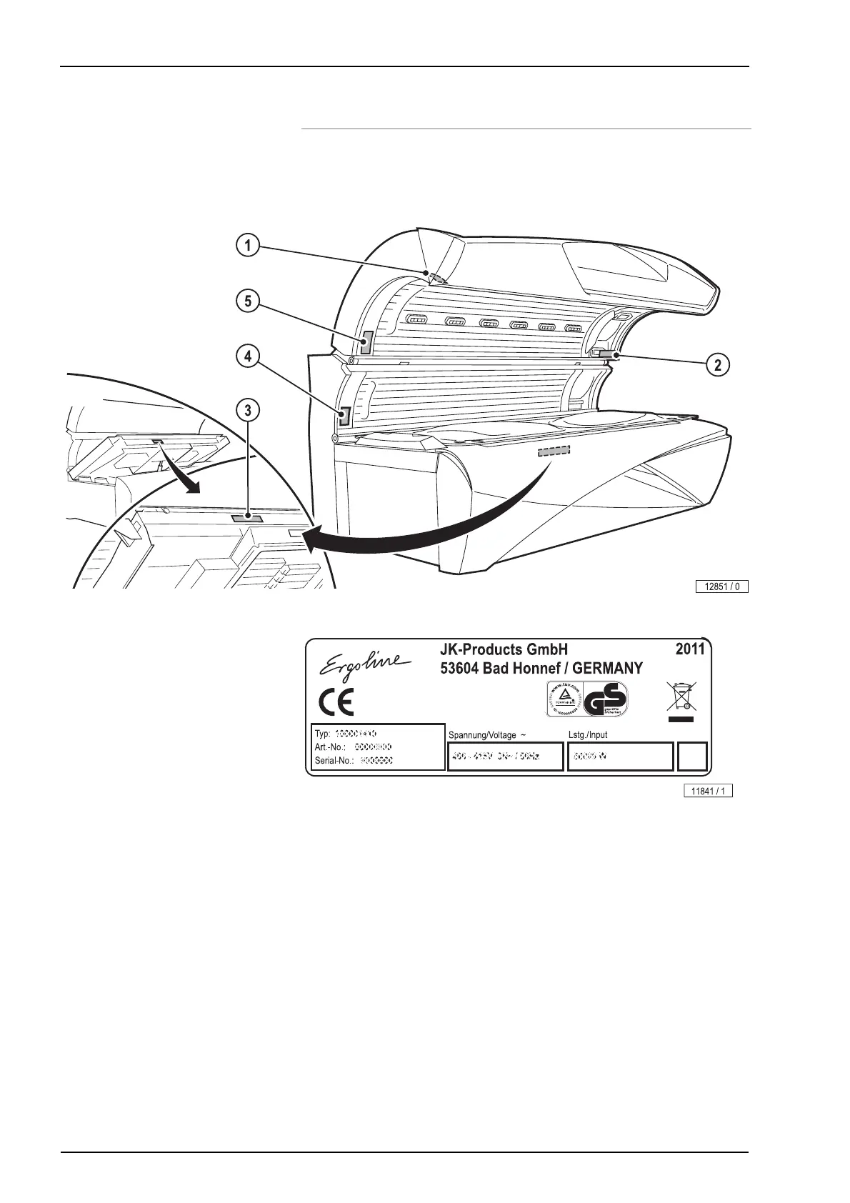 The name plate is attached to the interior side of the canopy. It contains im-