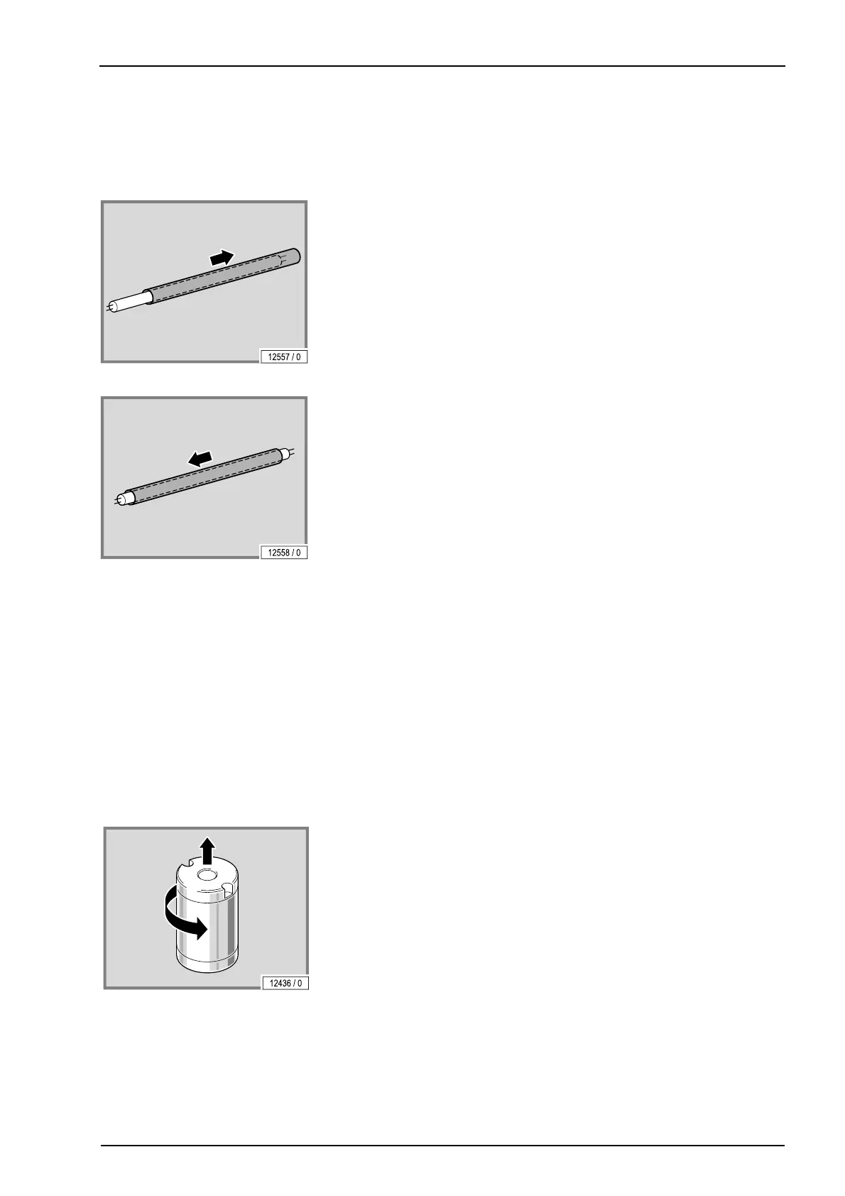 – Um 90° drehen und vorsichtig aus den Fassungen nehmen.