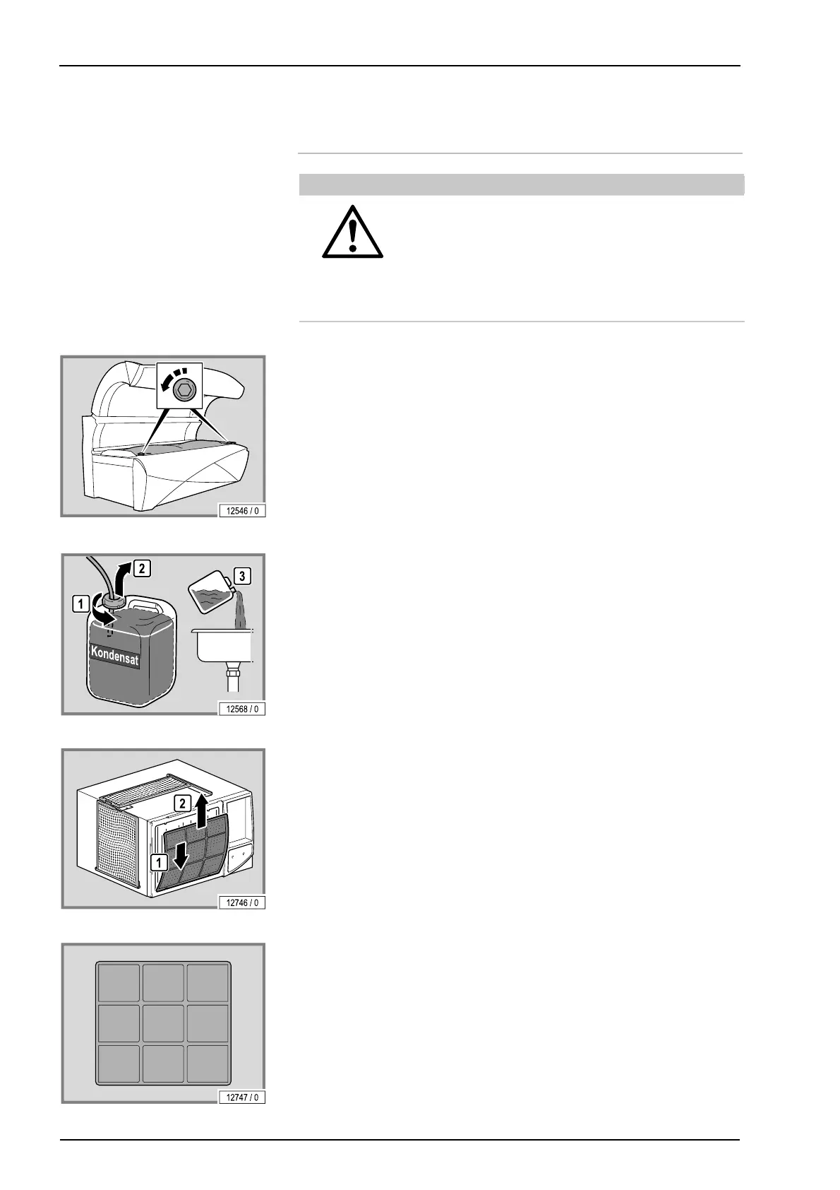 – Kondensatbehälter entleeren.