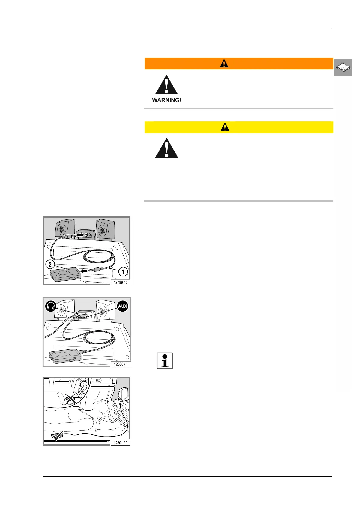 – Insert the AUX cable (stereo jack plug) in the audio system.