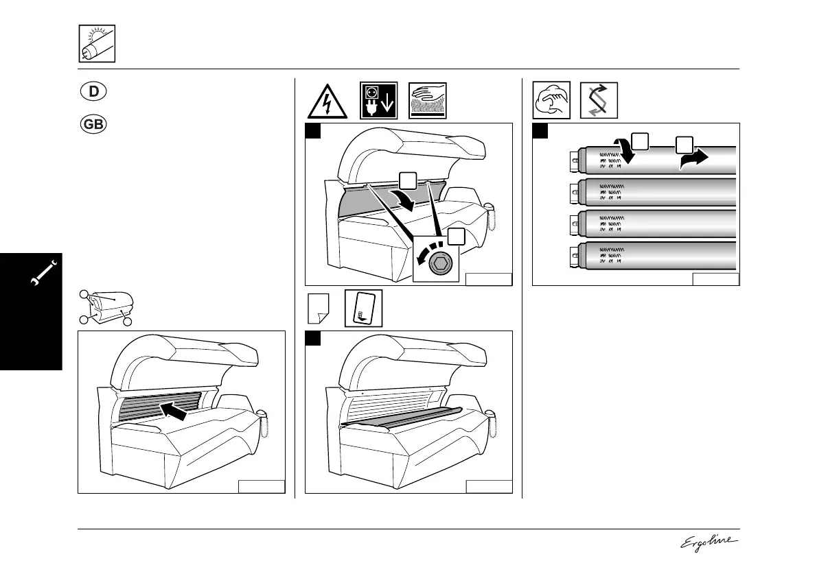 ergoline EXCELLENCE 700 - Cleaning;Replacing UV Low-Pressure Lamps in Side Section