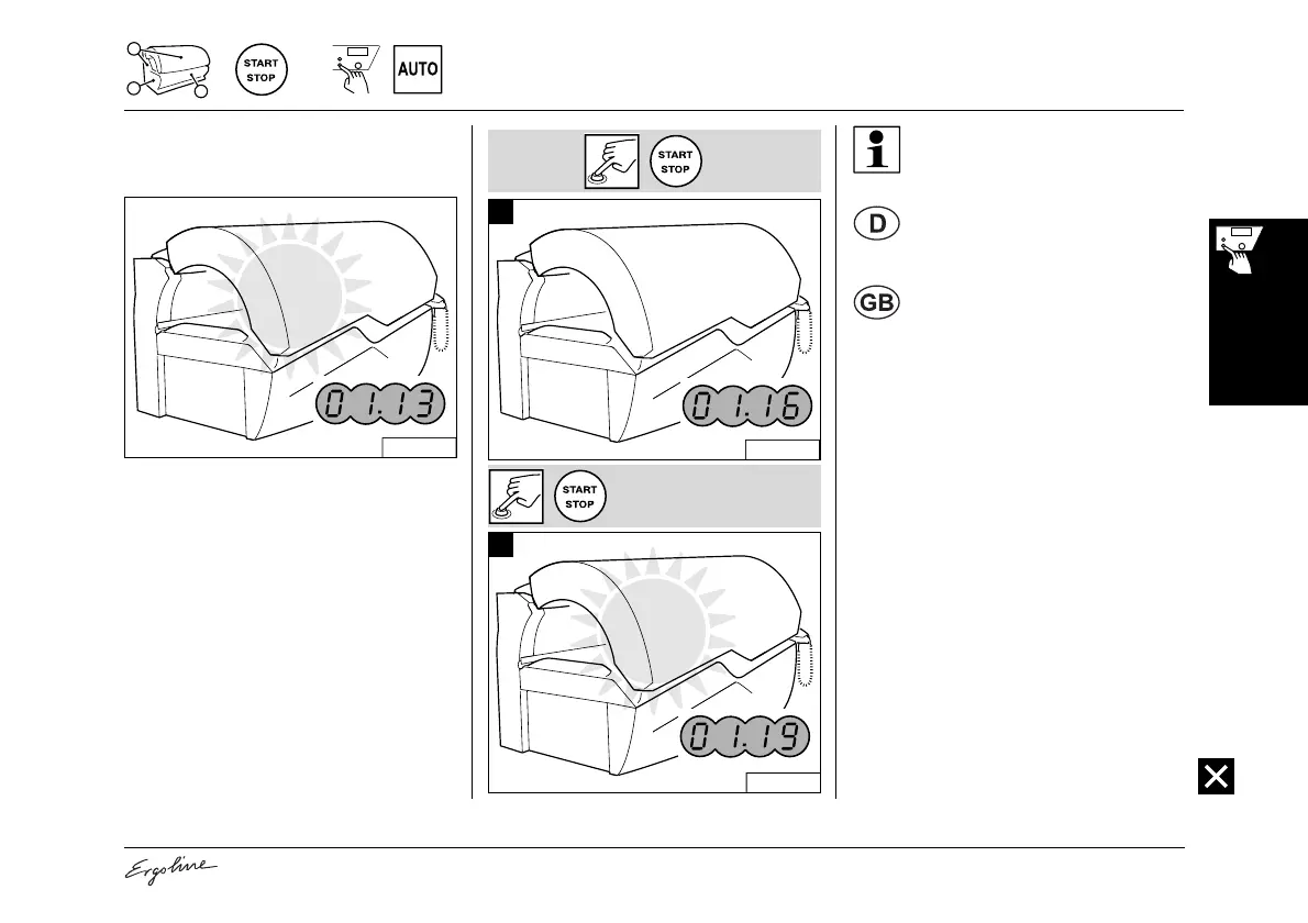ergoline EXCELLENCE 700 - UV-Lampen während der Bräunung Aus- und Einschalten; Switching UV Lamps on and off During Tanning