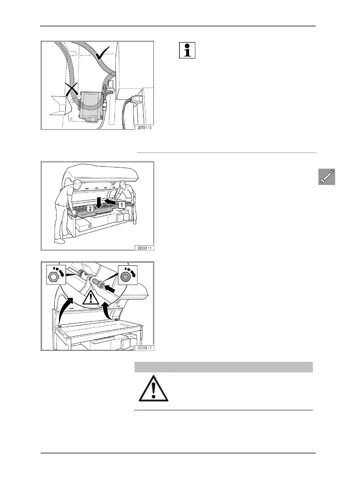 Verletzungsgefahr durch herabfallende Wanne!