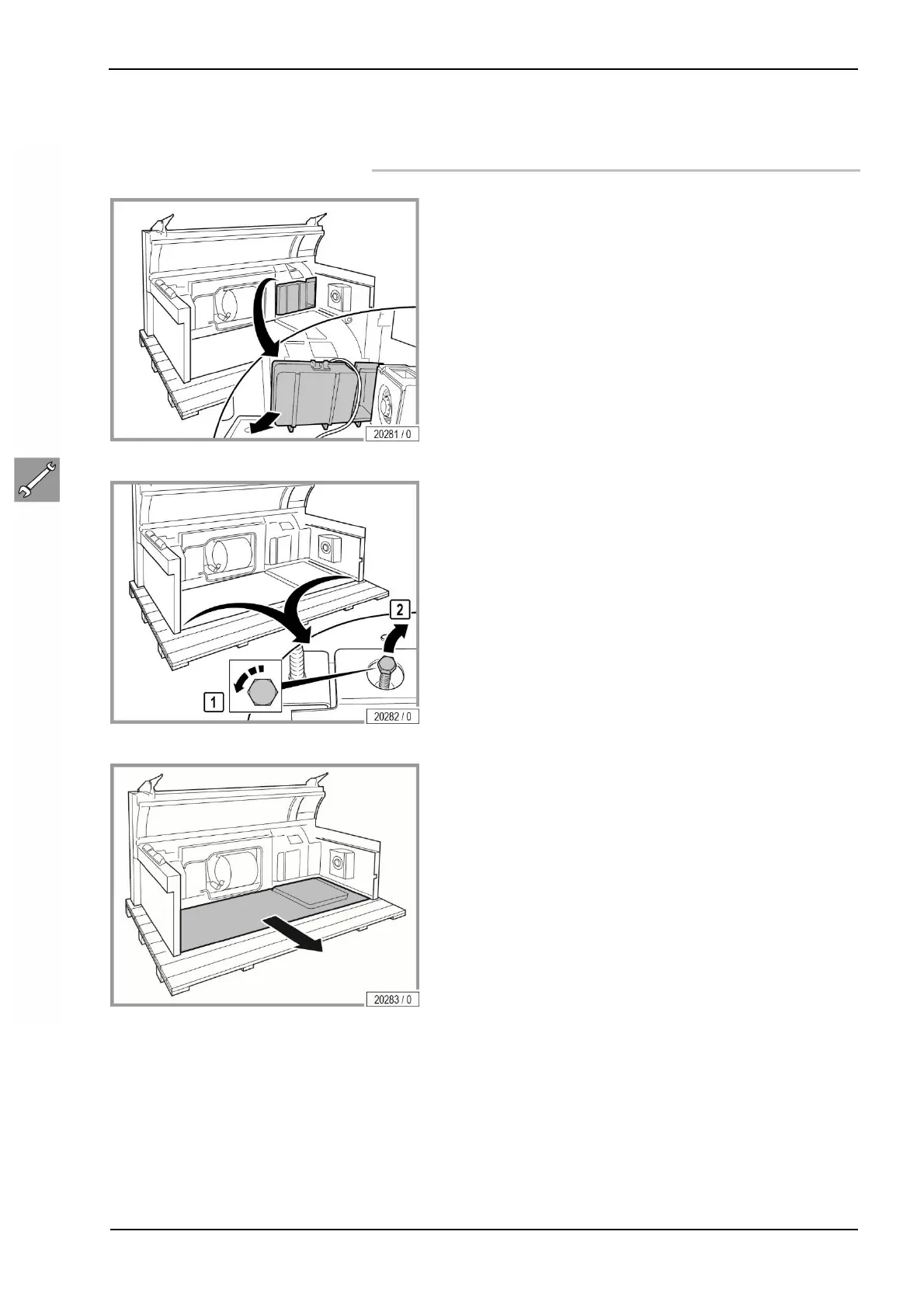 – Take the bolts (2) out downwards from the