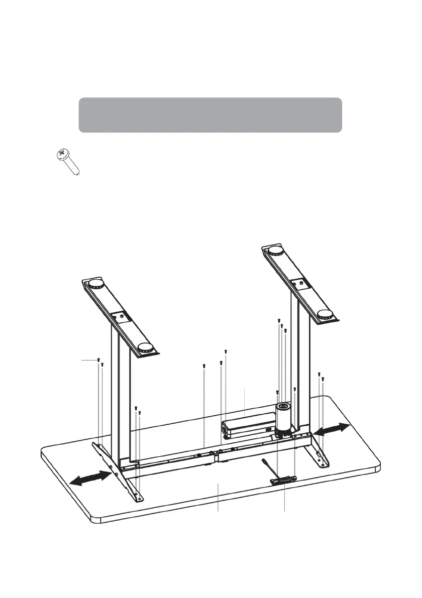 Secure the tabletop (1) to the base assembly with twelve ST4.2 screws (F). The distance
