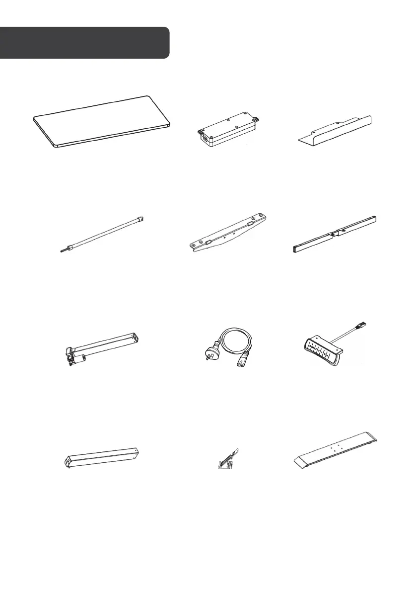1 Tabletop (x1) 2 Control box (x1) 3 Baffle (x1)