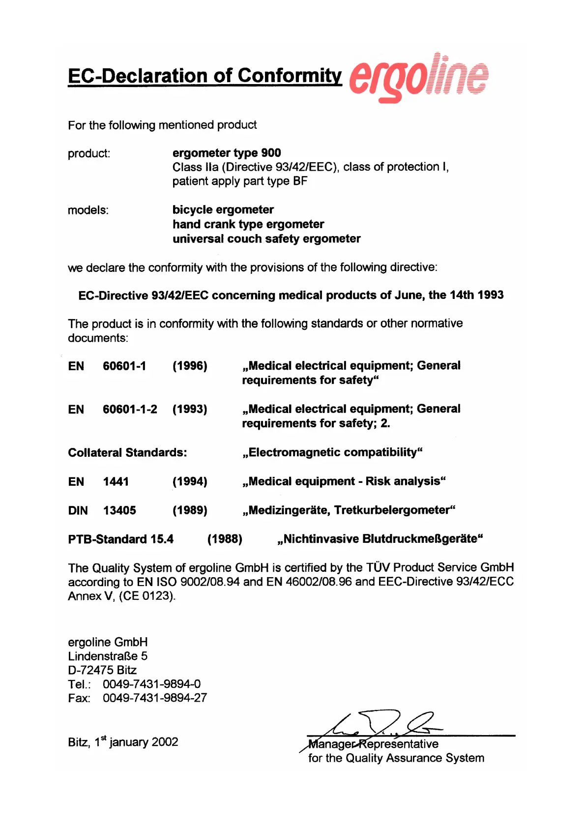 ERGOMETRICS ER900 PC - EC Declaration of Conformity