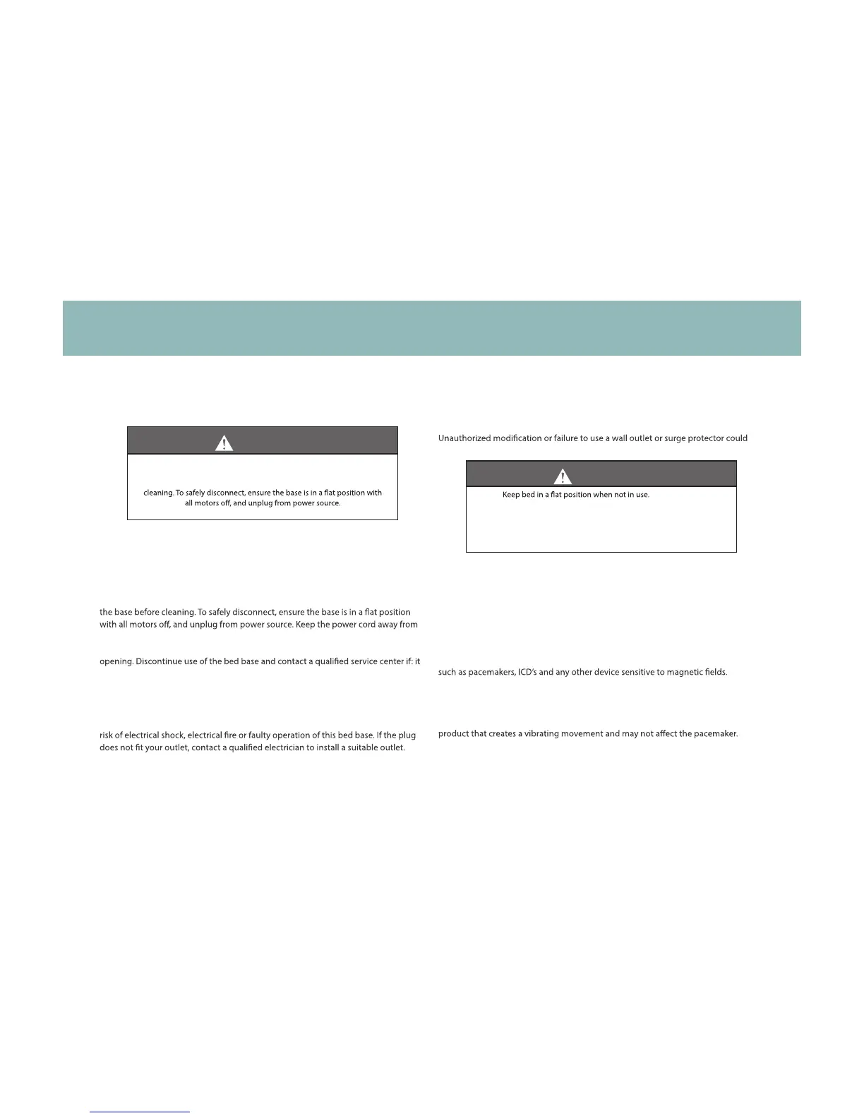 water. Only use this bed base for its intended use as described in this manual. Do not