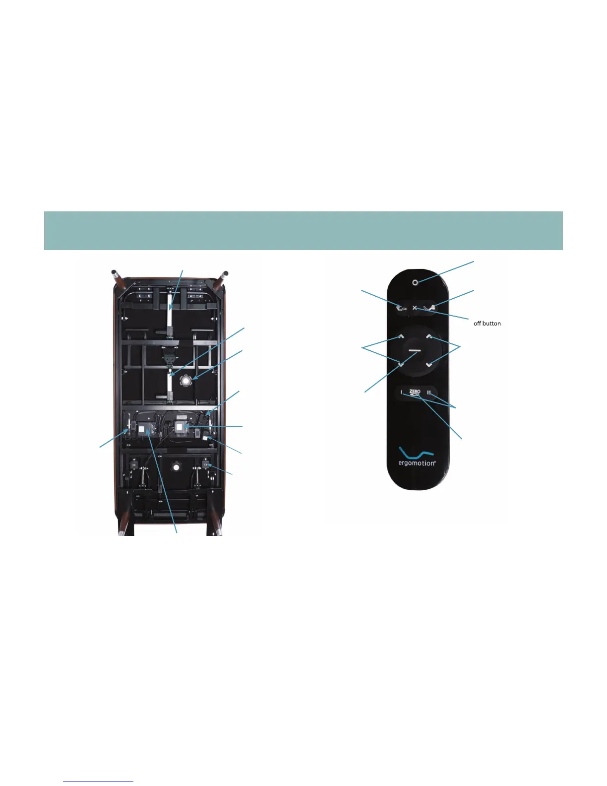 Ergomotion Element - Base and Remote Overview; Base Component Identification; Remote Control Functions
