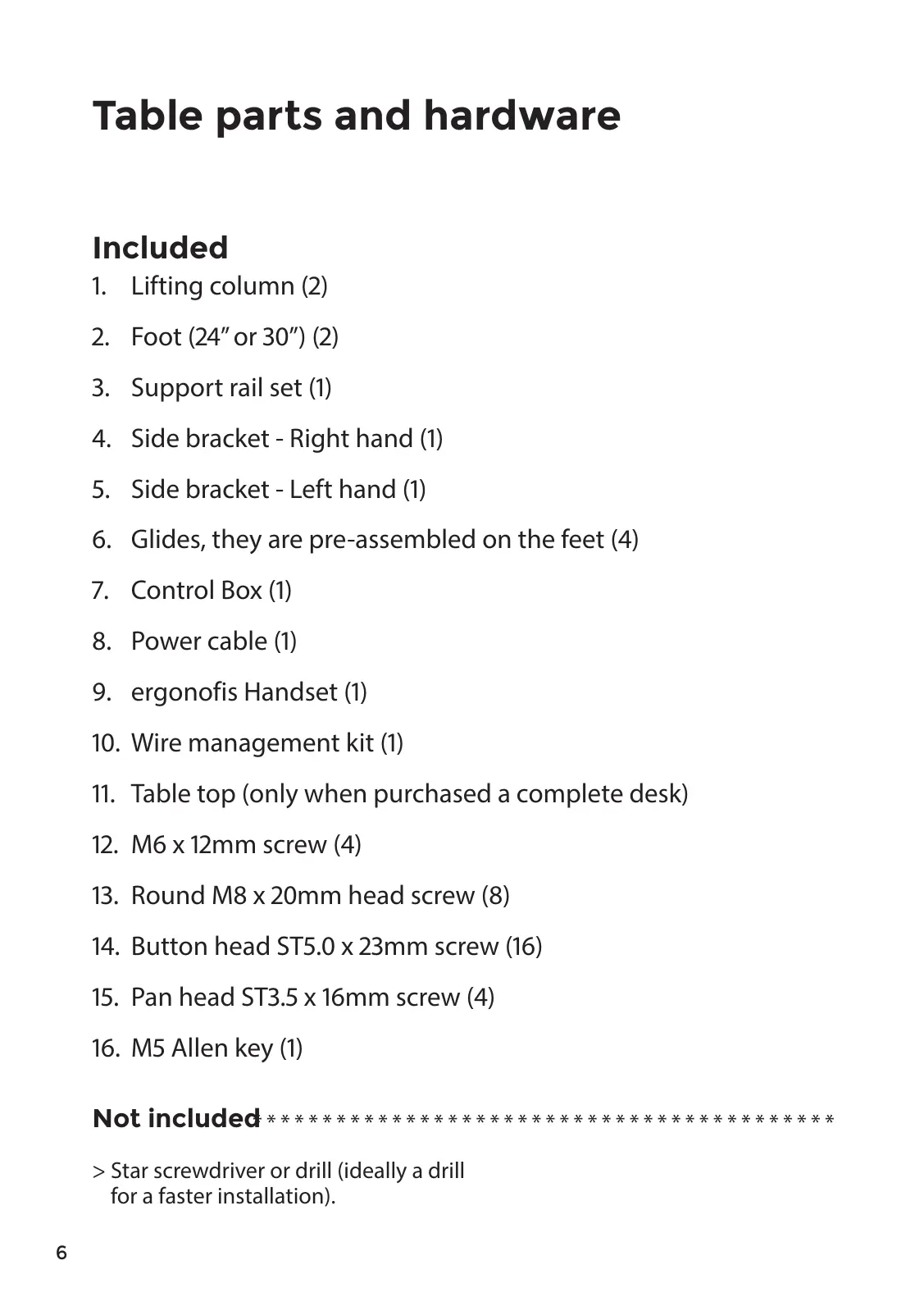 11. Table top (only when purchased a complete desk)