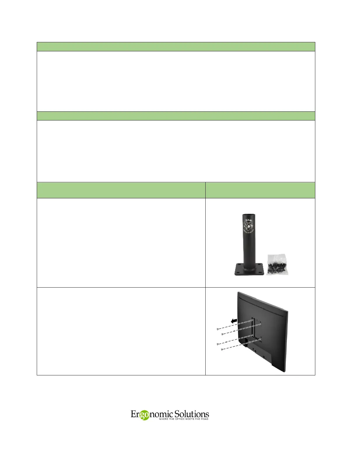 Refer to your monitor’s user guide for specific information pertaining to the screw size needed