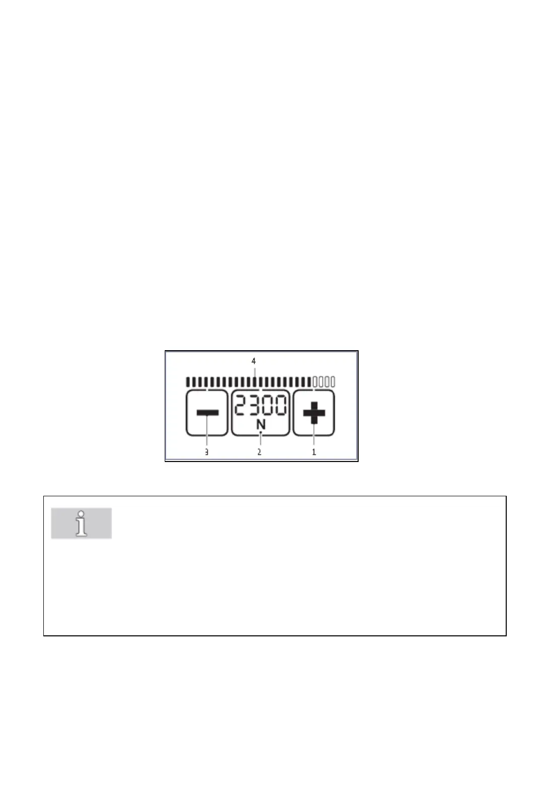 Press + (1) or – (3) button until the required tension force is displayed.