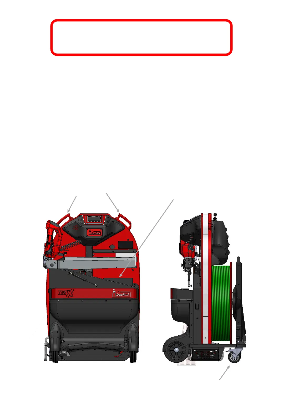 grips (Fig.1). For pushing it you must release the brakes of the two guide rolls