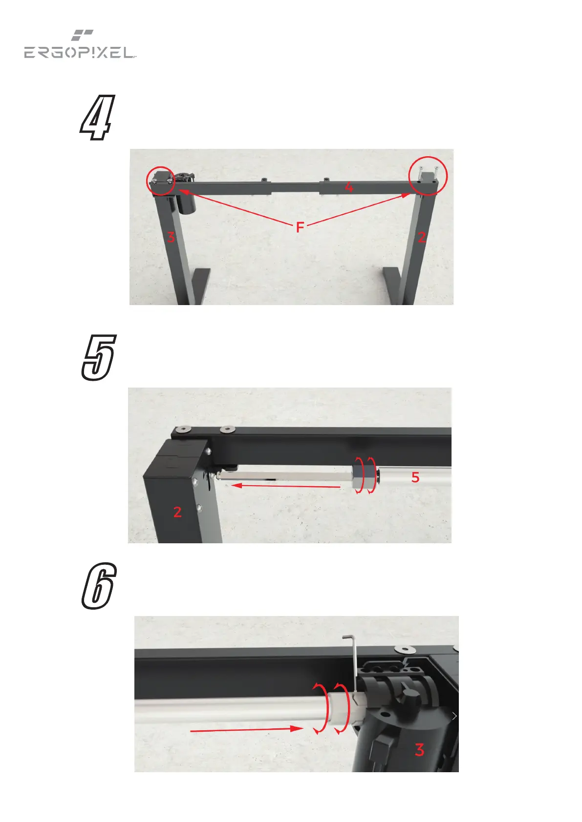 Tighten the screws (F) with the 5x5 allen key (A).
