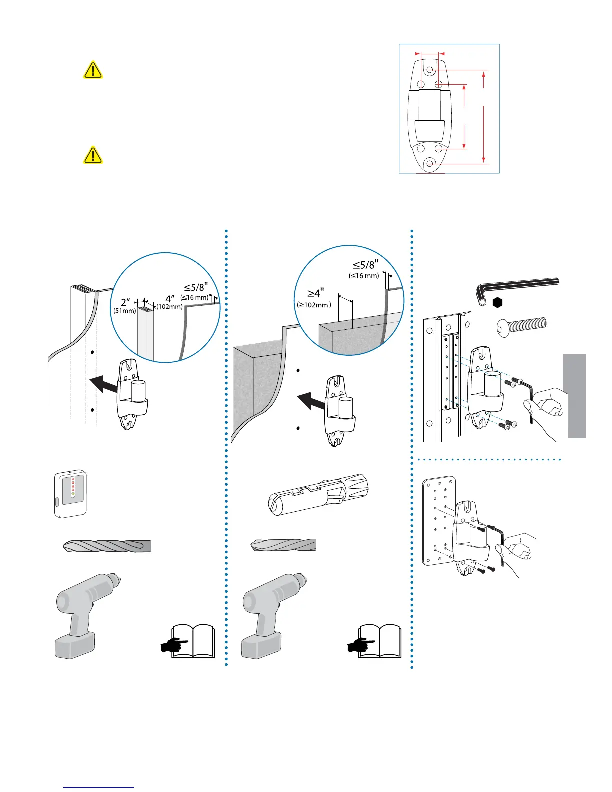 total weight of mounted equipment. Mounting to wall surfaces that