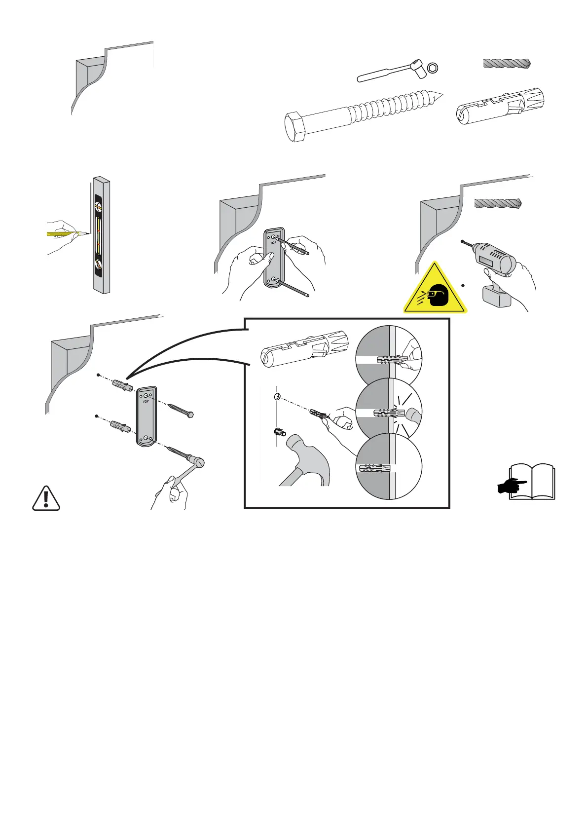 ATTENZIONE: Tasselli che non facciano presa nel cemento non saranno in grado di reggere il carico, con conseguente instabilità e mancanza di sicurezza, che possono condurre a danni alle persone