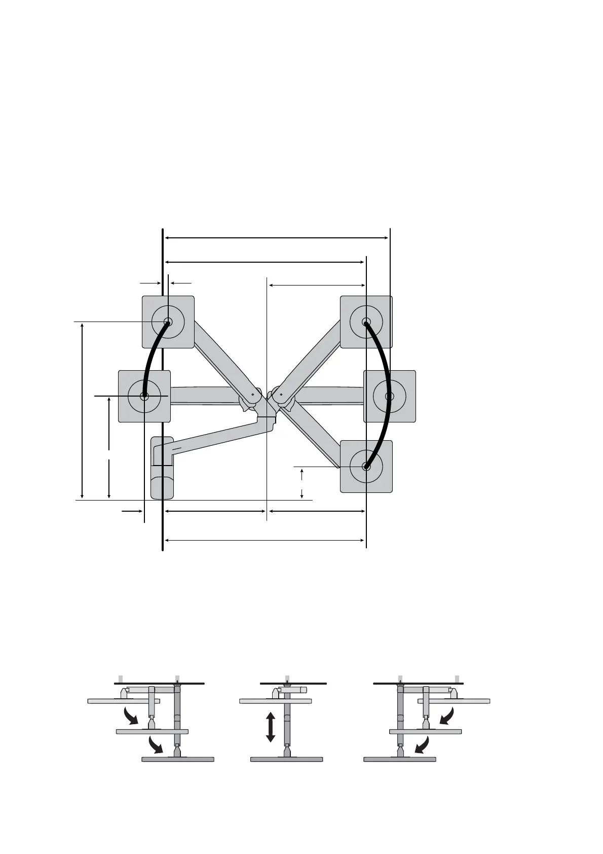 モニターを壁から離した状態での動作範囲を示す上面図。