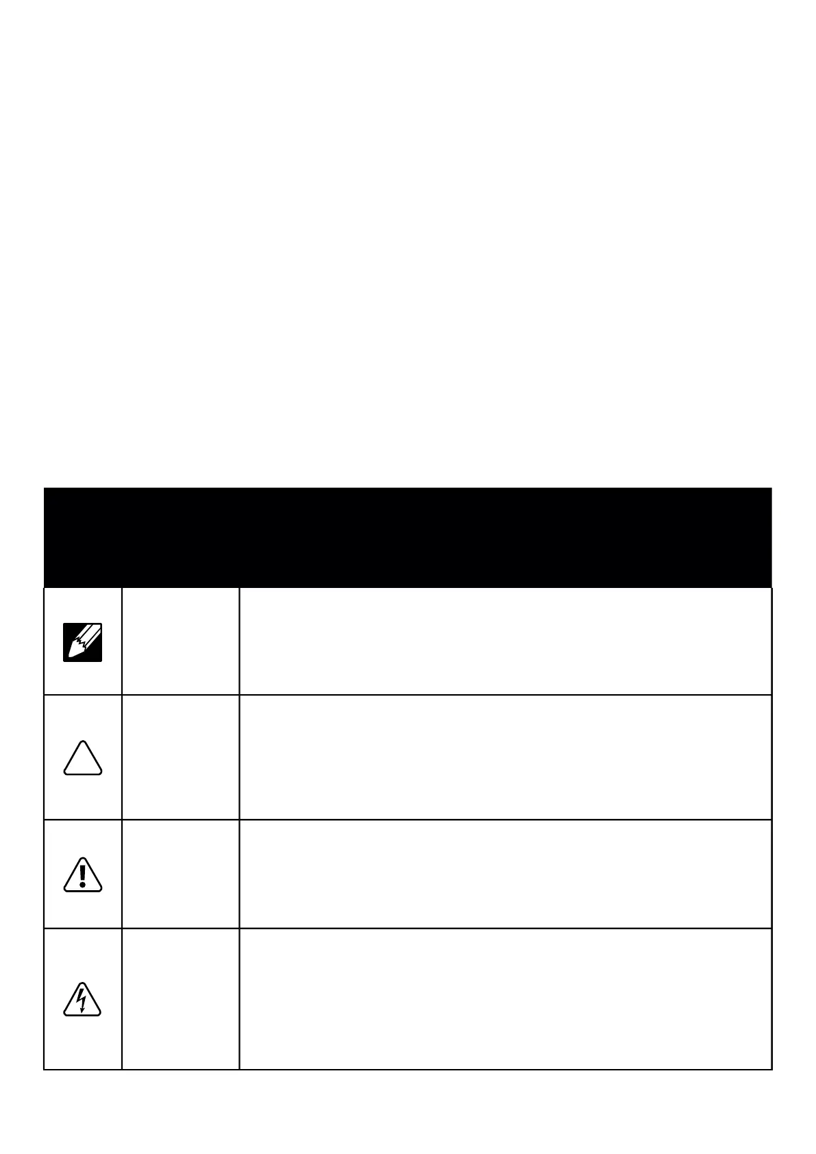 An Electrical indicates an impending electrical hazard which, if not avoided, may result in personal injury, fi re and/or death.