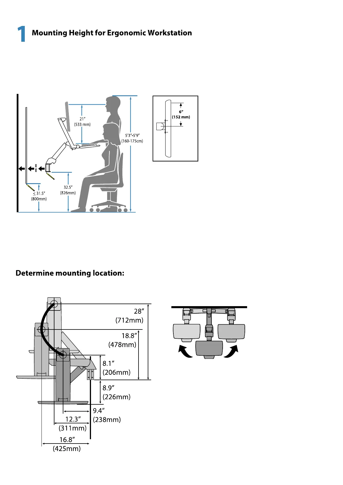 This mounting height is a recommendation for an ergonomic workstation that accommodates user heights of 5’3”-5’9”