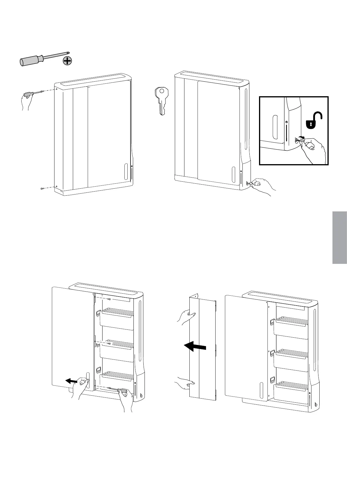 a. Slide door to the left and remove these 3 screws. Save screws for reattaching cover.