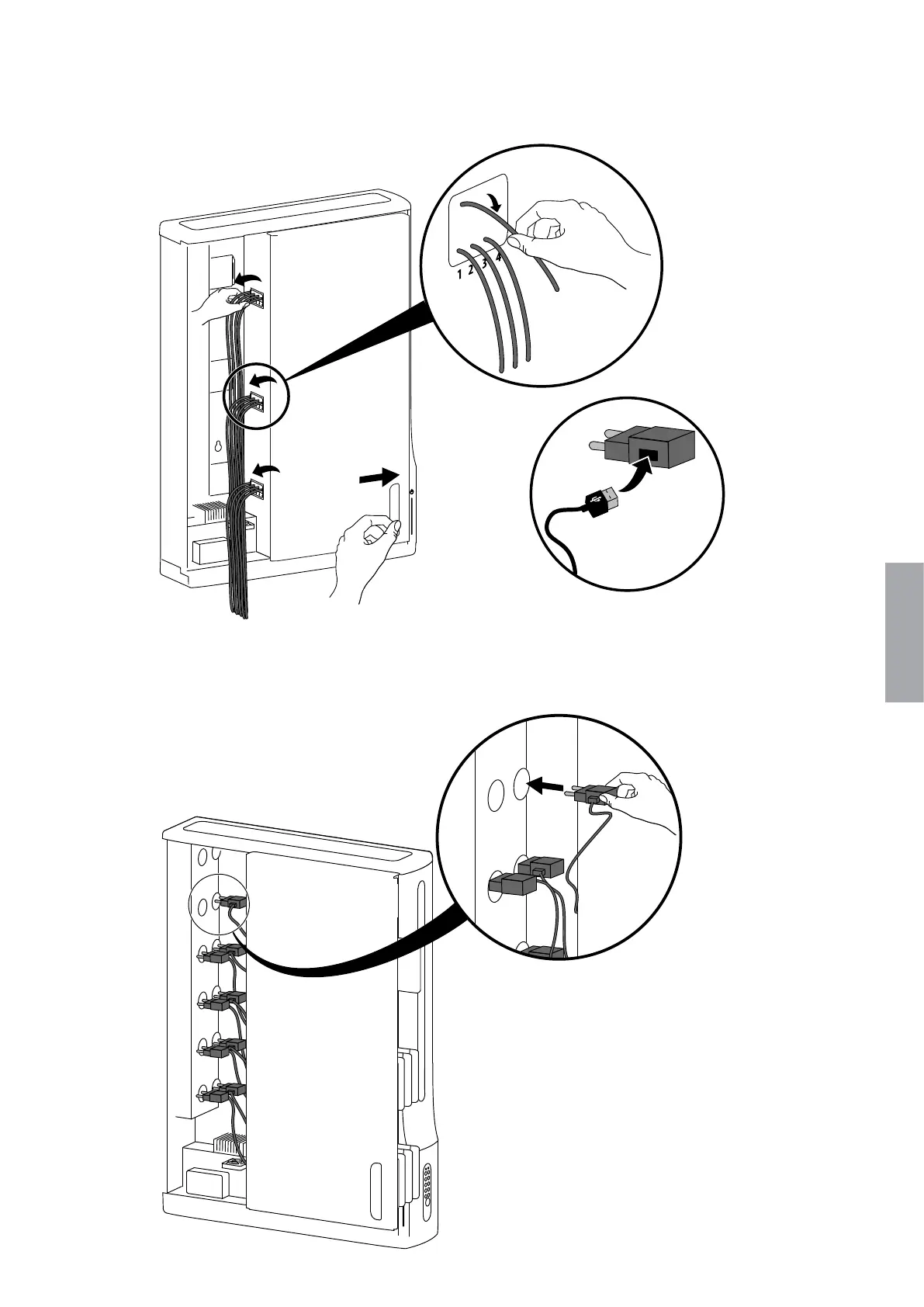 Pull USB cables through outer wall. Make sure cables are positioned one