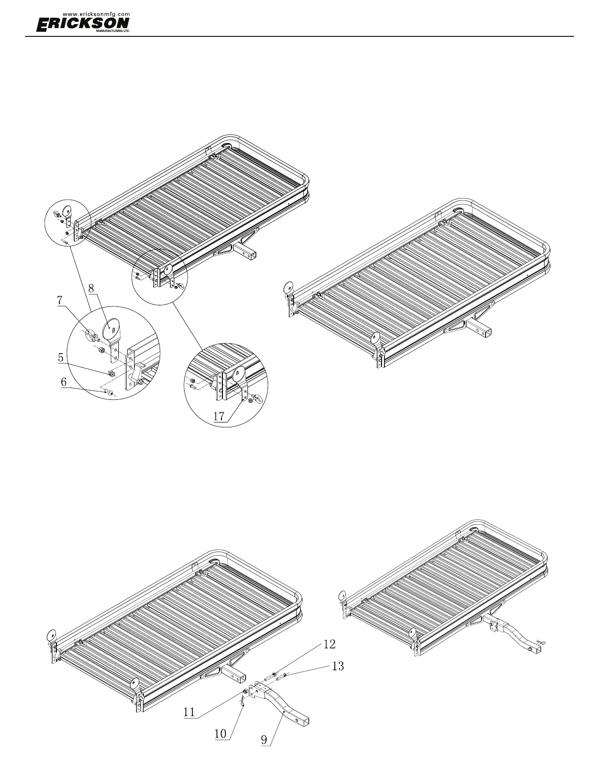 STEP 3 Install folding bar(#9), align the holes and tighten with M16 bolt (#12) M16 lock nut (#11),
