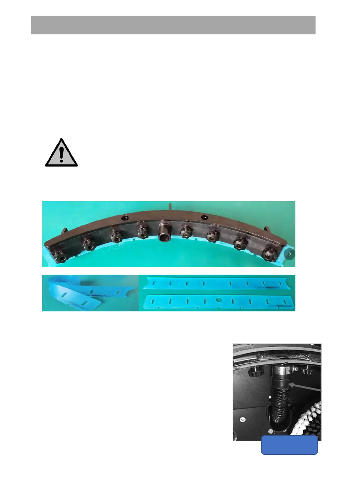 4. Push the eight screws through the front blade to remove the squeegee front plate.
