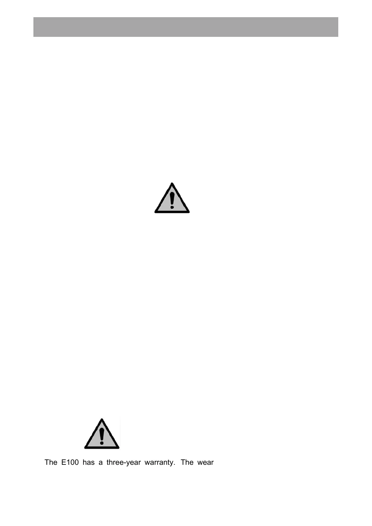 The E100 has a three-year warranty. The wear on the brushes and