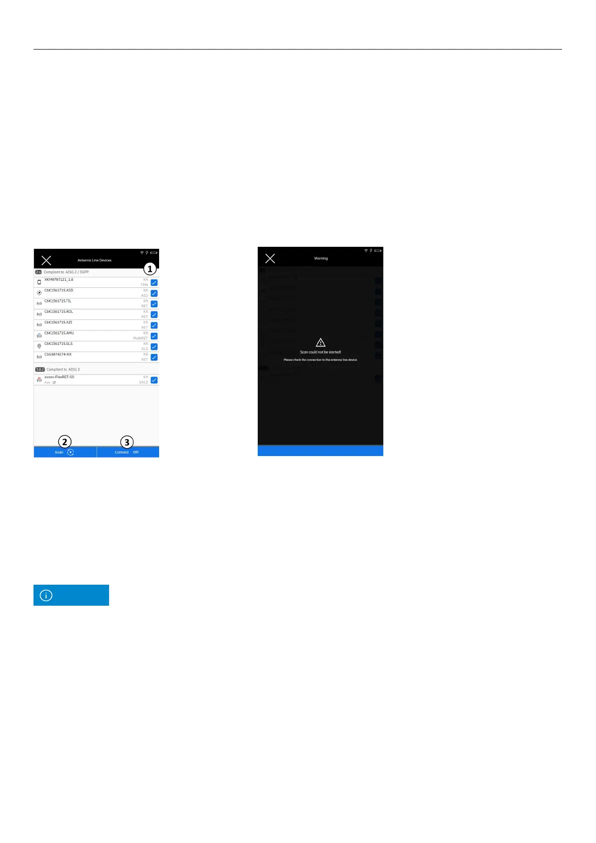 ② Selects the AISG protocol scanning options, see