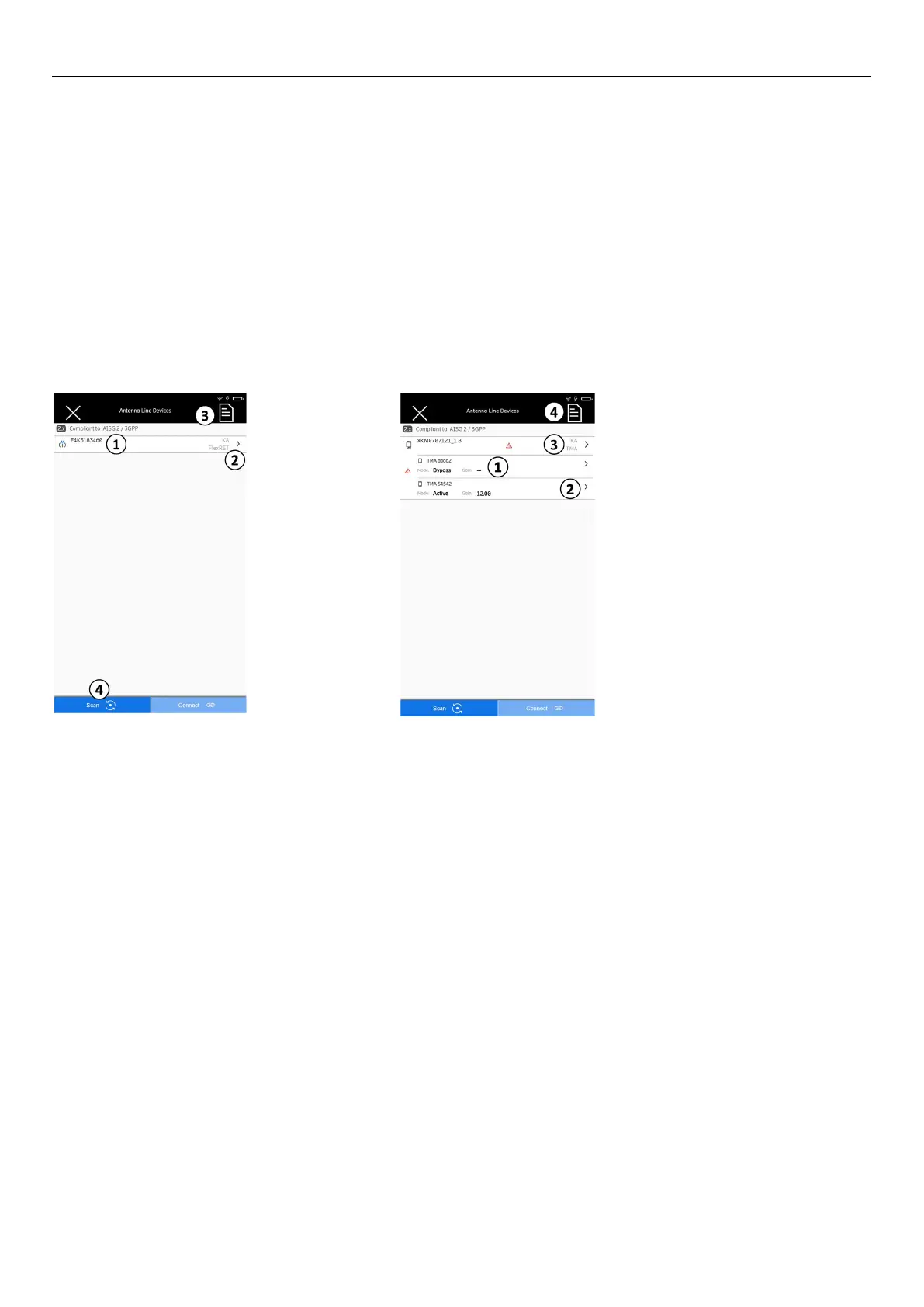 ④ Selects the AISG protocol scanning options