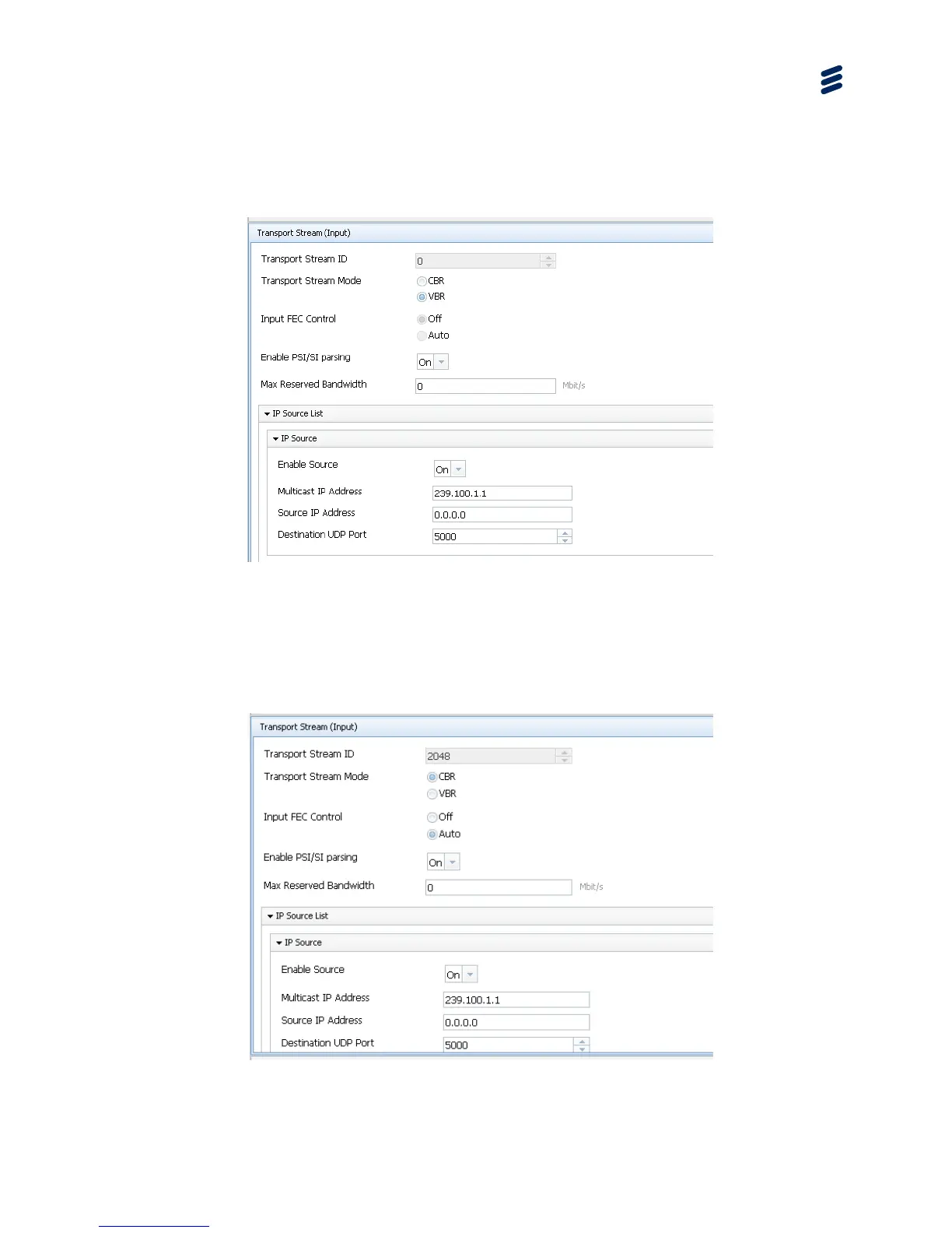 • For an incoming SPTS VBR Multicast, set the Transport Stream Mode to VBR.