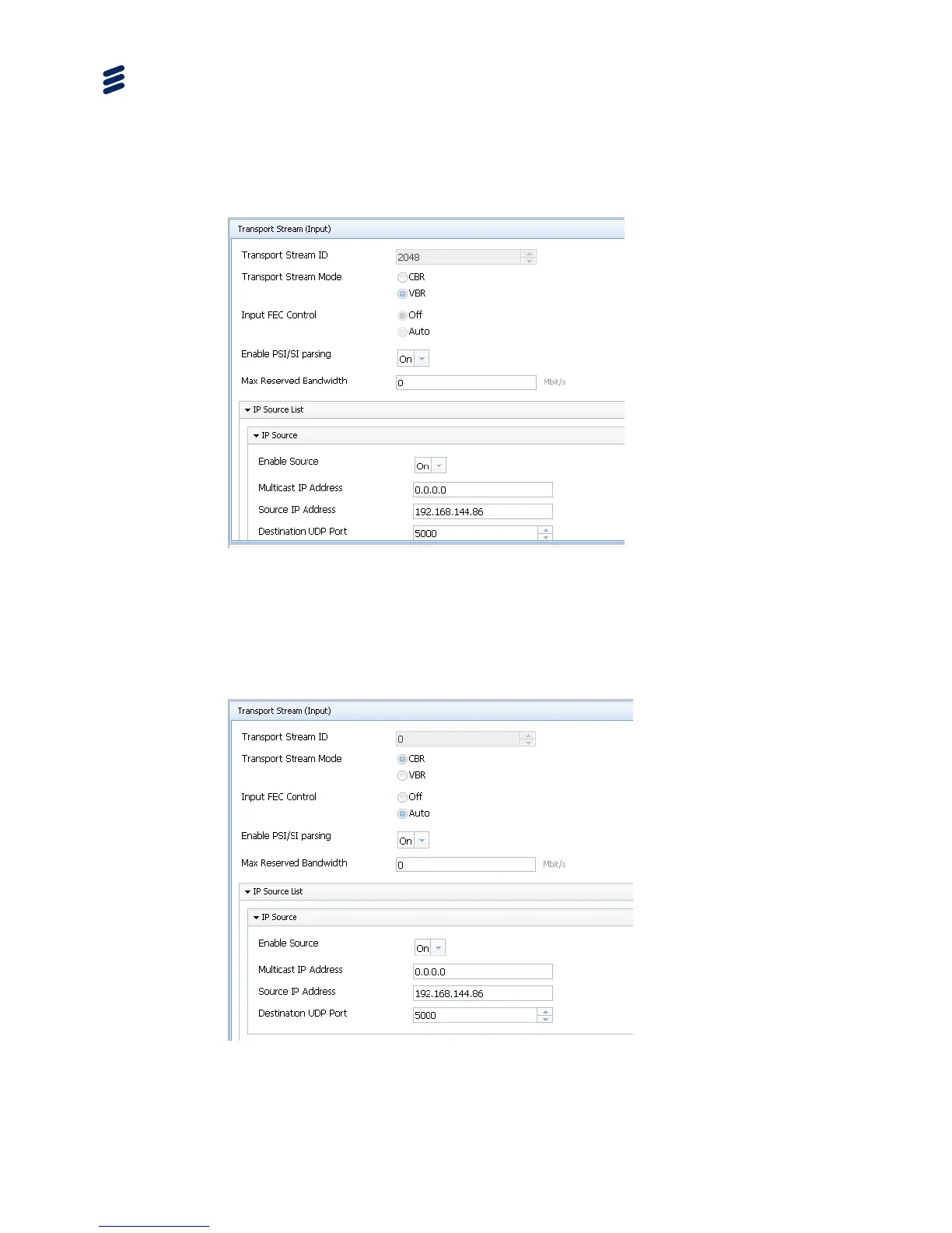 for VBR input. Set the Source IP Address to the incoming stream address and
