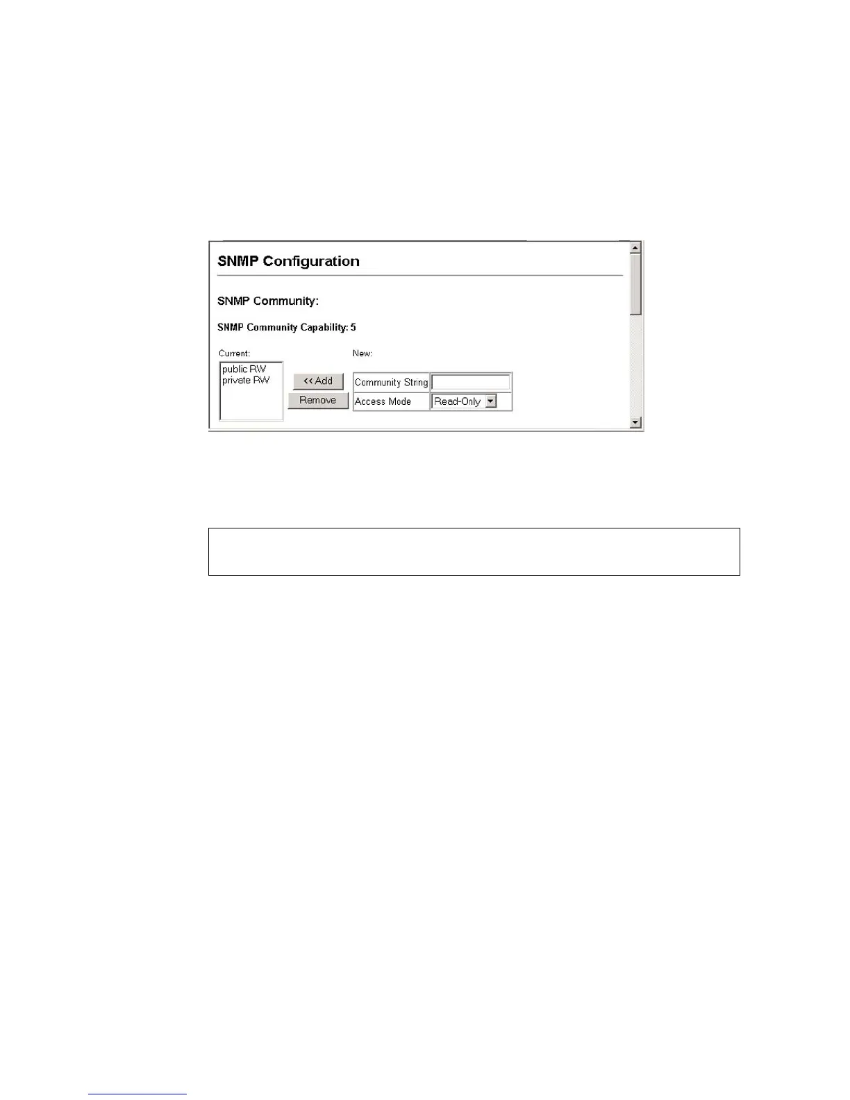 Web – Click SNMP, Configuration. Add new community strings as required,