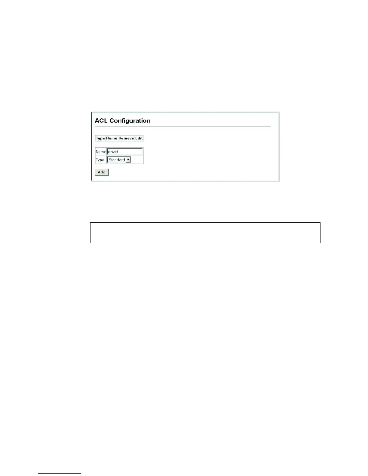 Web – Click Security, ACL, Configuration. Enter an ACL name in the Name field,