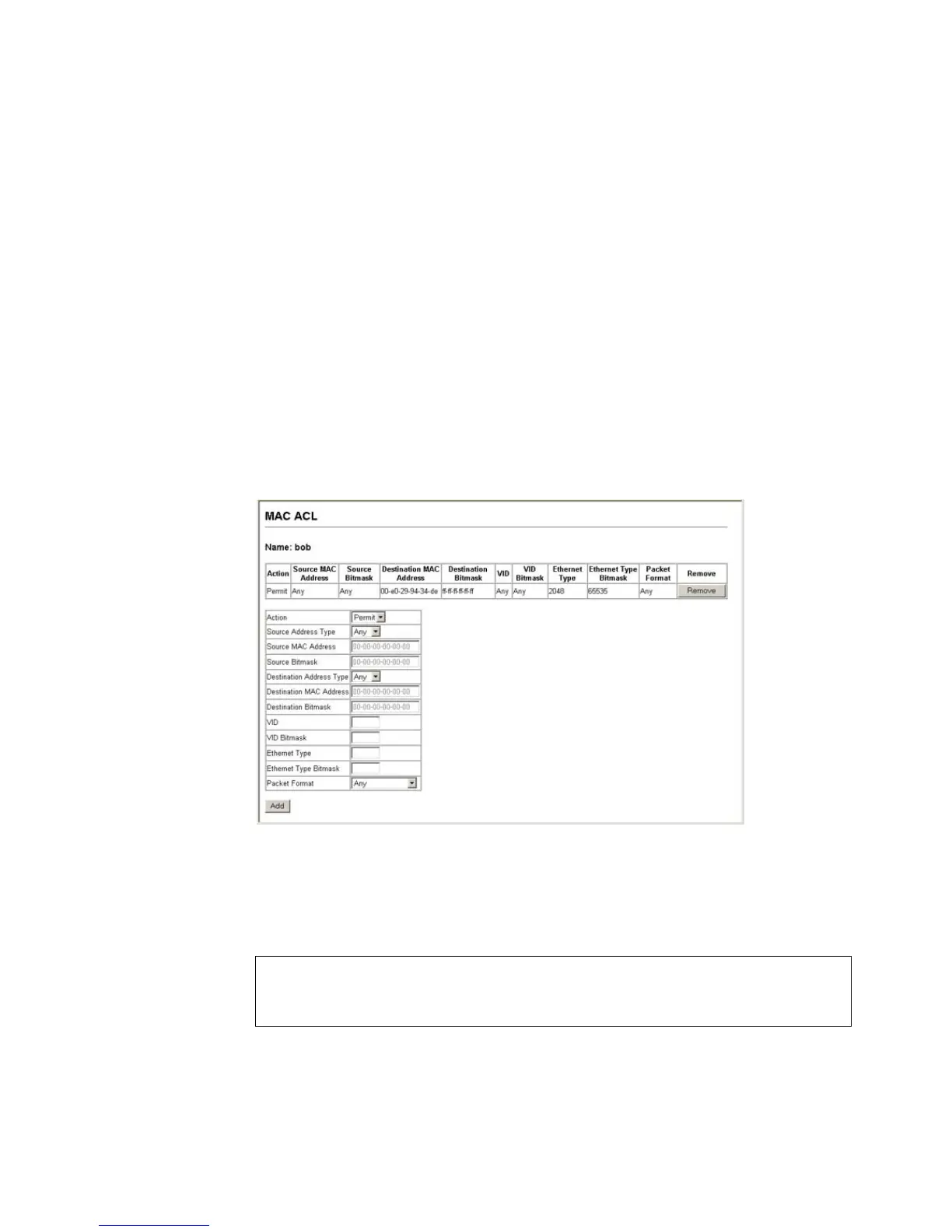 Console(config-mac-acl)#permit any host 00-e0-29-94-34-de