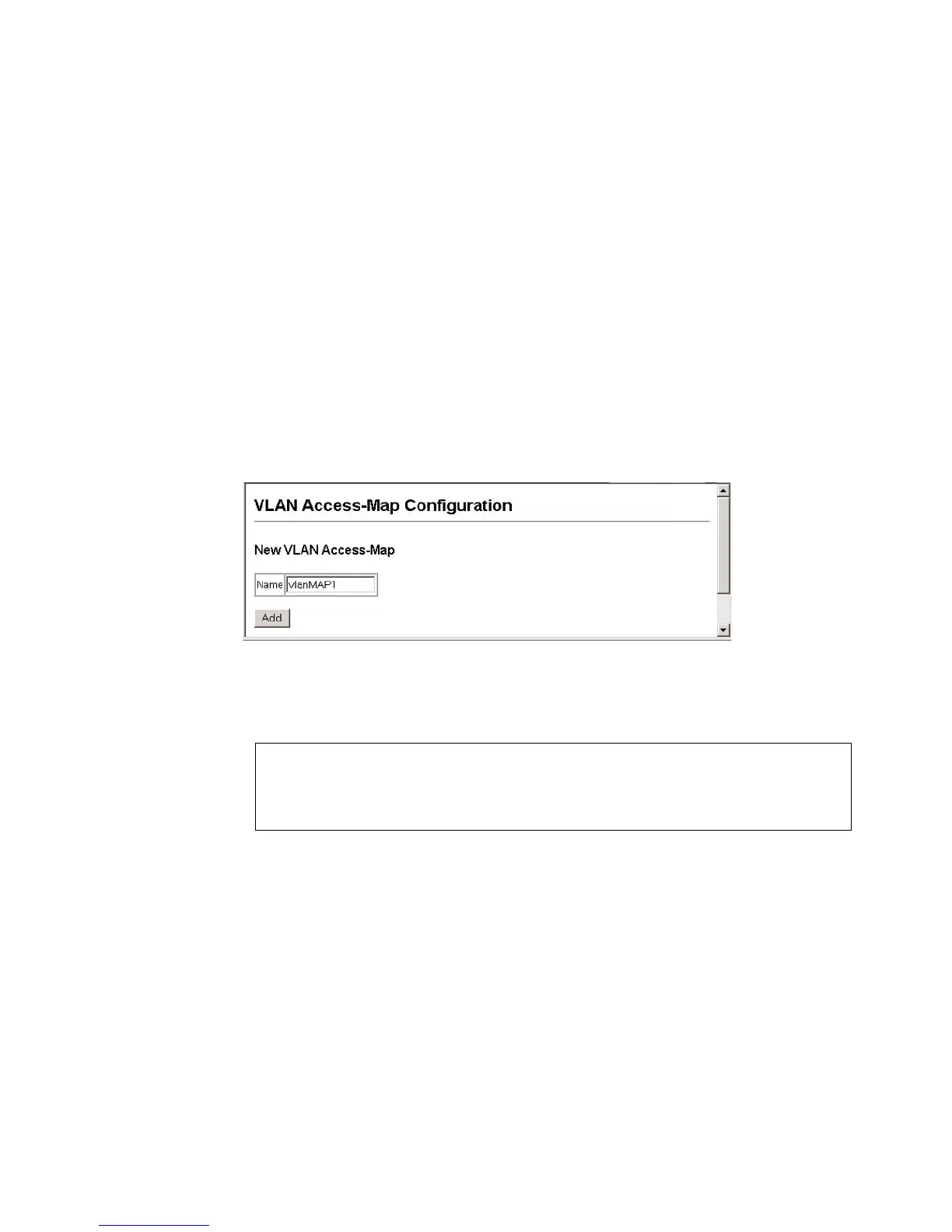 Use the VLAN Access Map Configuration page to designate the name of a new