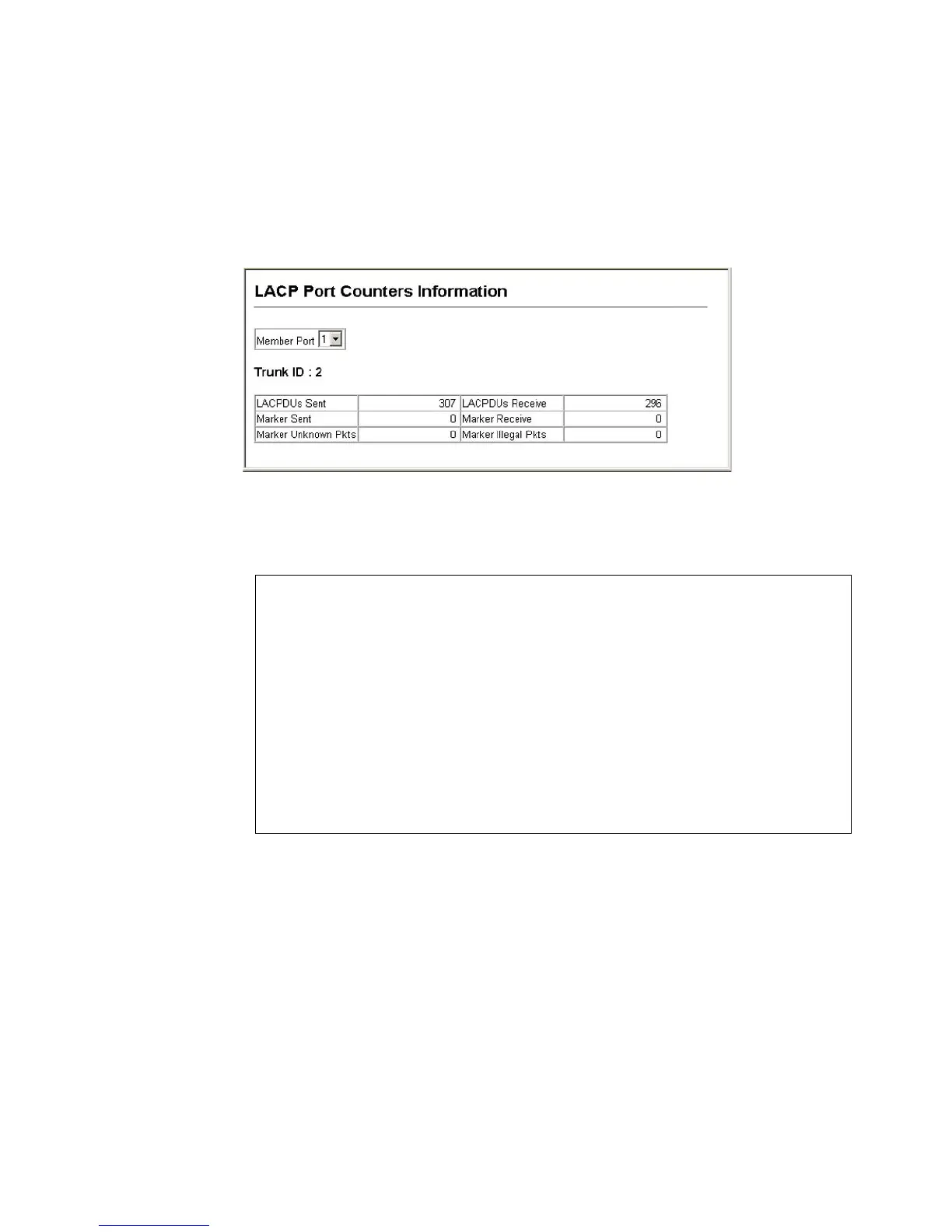 Web – Click Port, LACP, Port Counters Information. Select a member port to