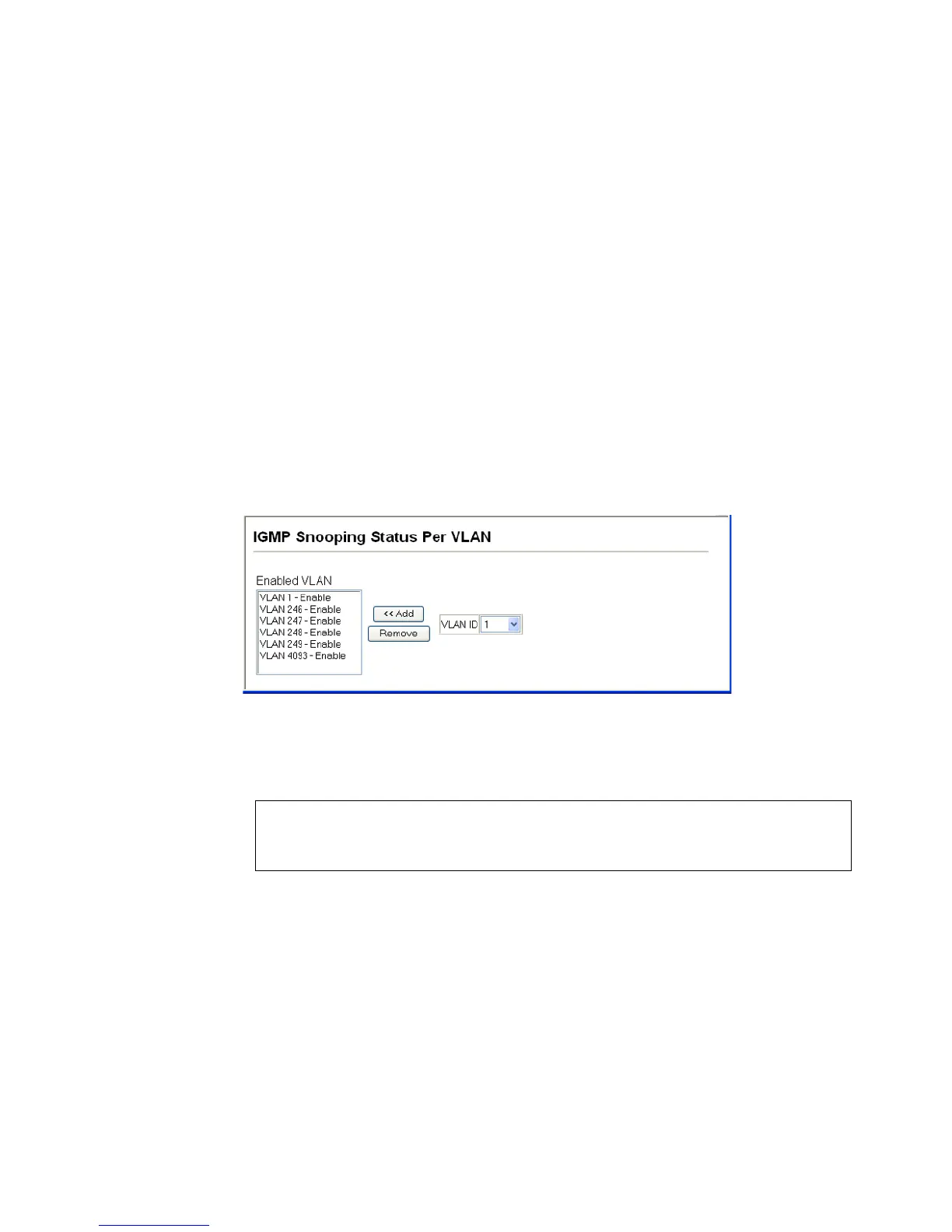 Web – Click IGMP Snooping, IGMP Snooping Status per VLAN. Use the Add or
