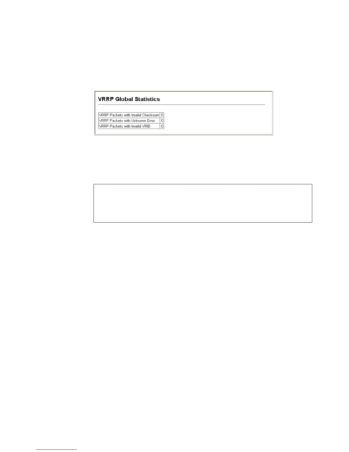 The VRRP Group Statistics page displays counters for VRRP protocol events